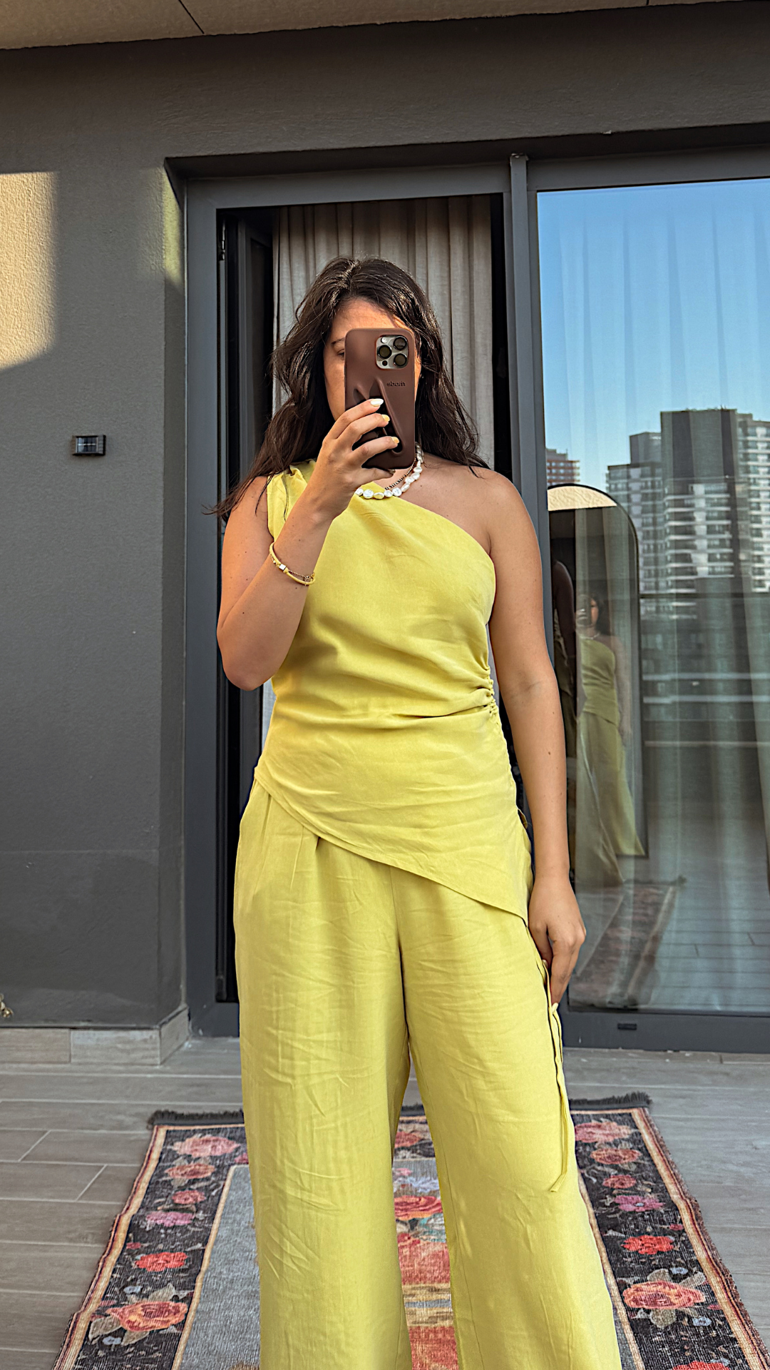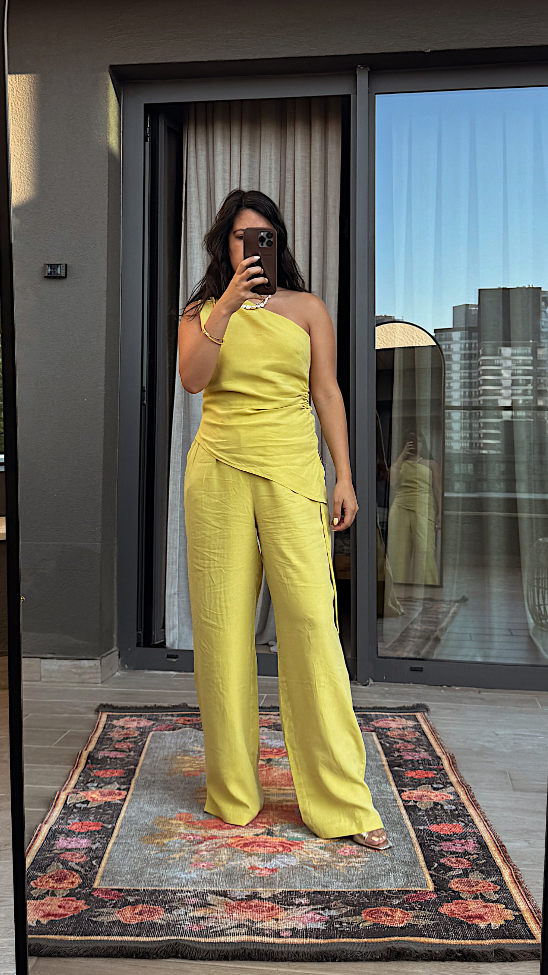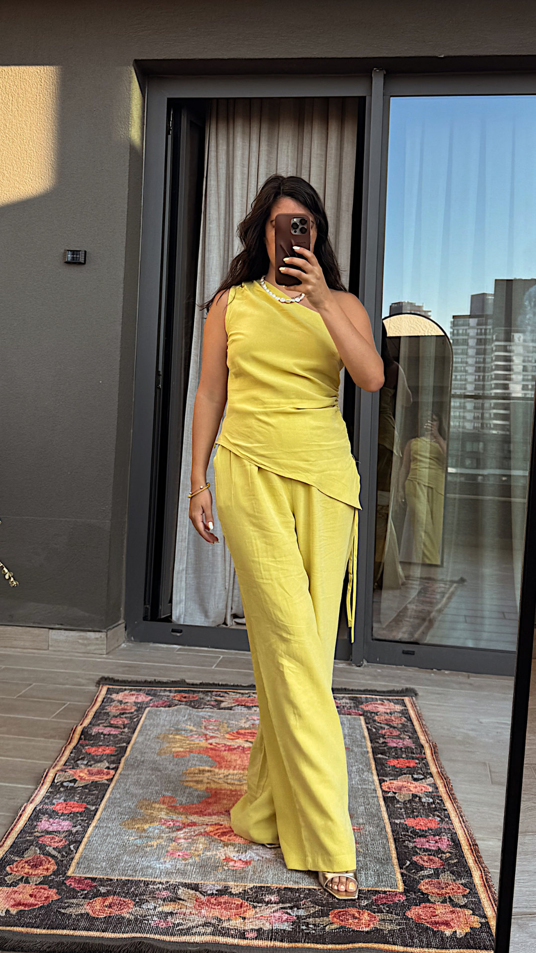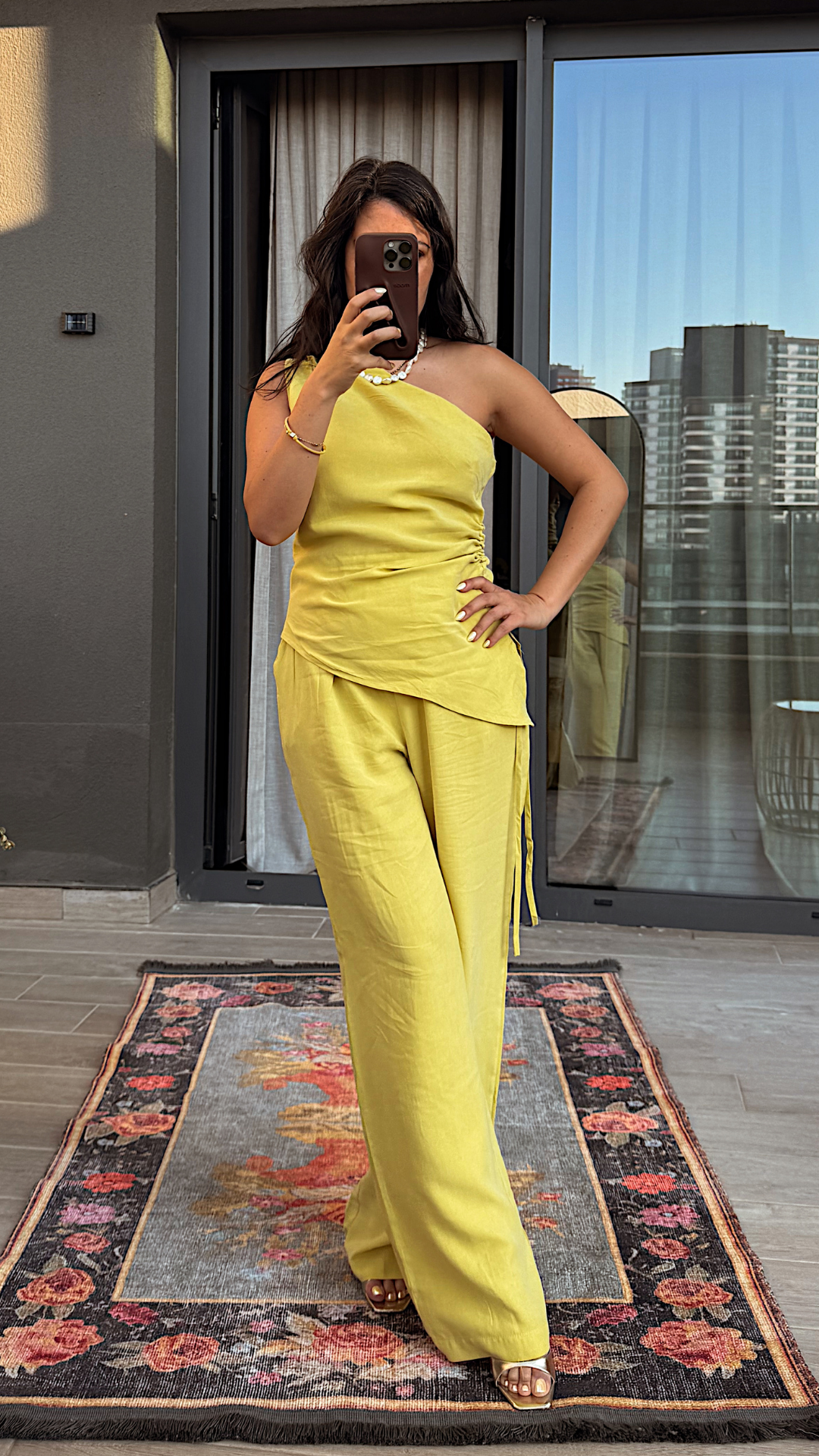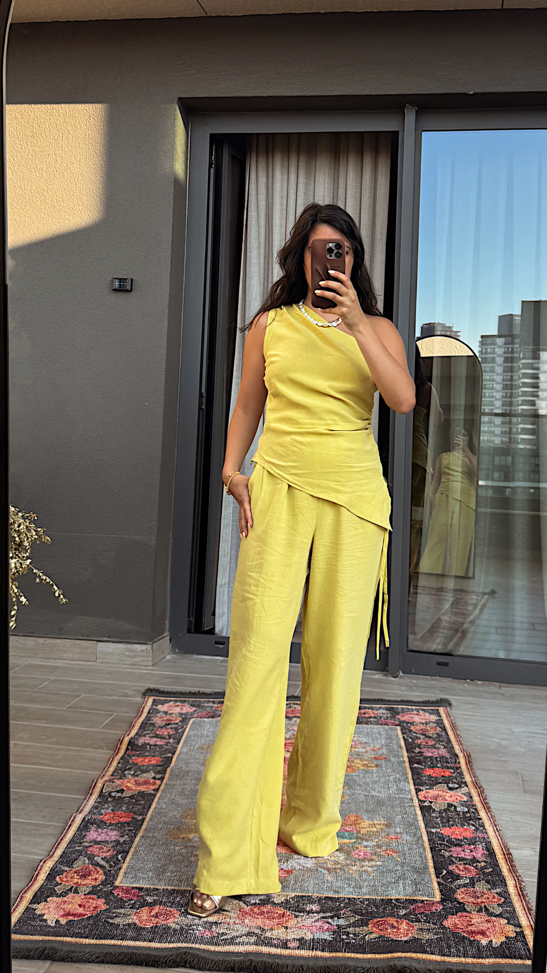 Asimetrik Bluzlu Sarı Takım