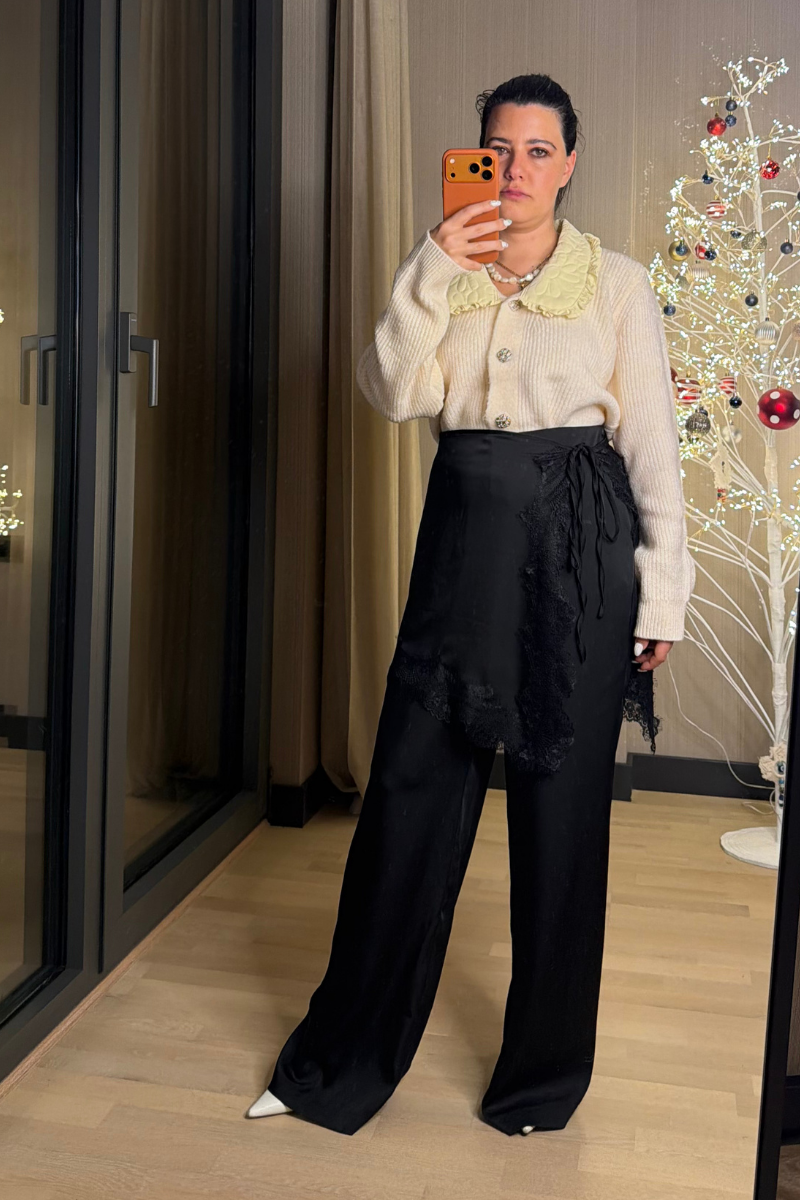 Bel Aksesuarlı Dantel Detaylı Saten Pantolon