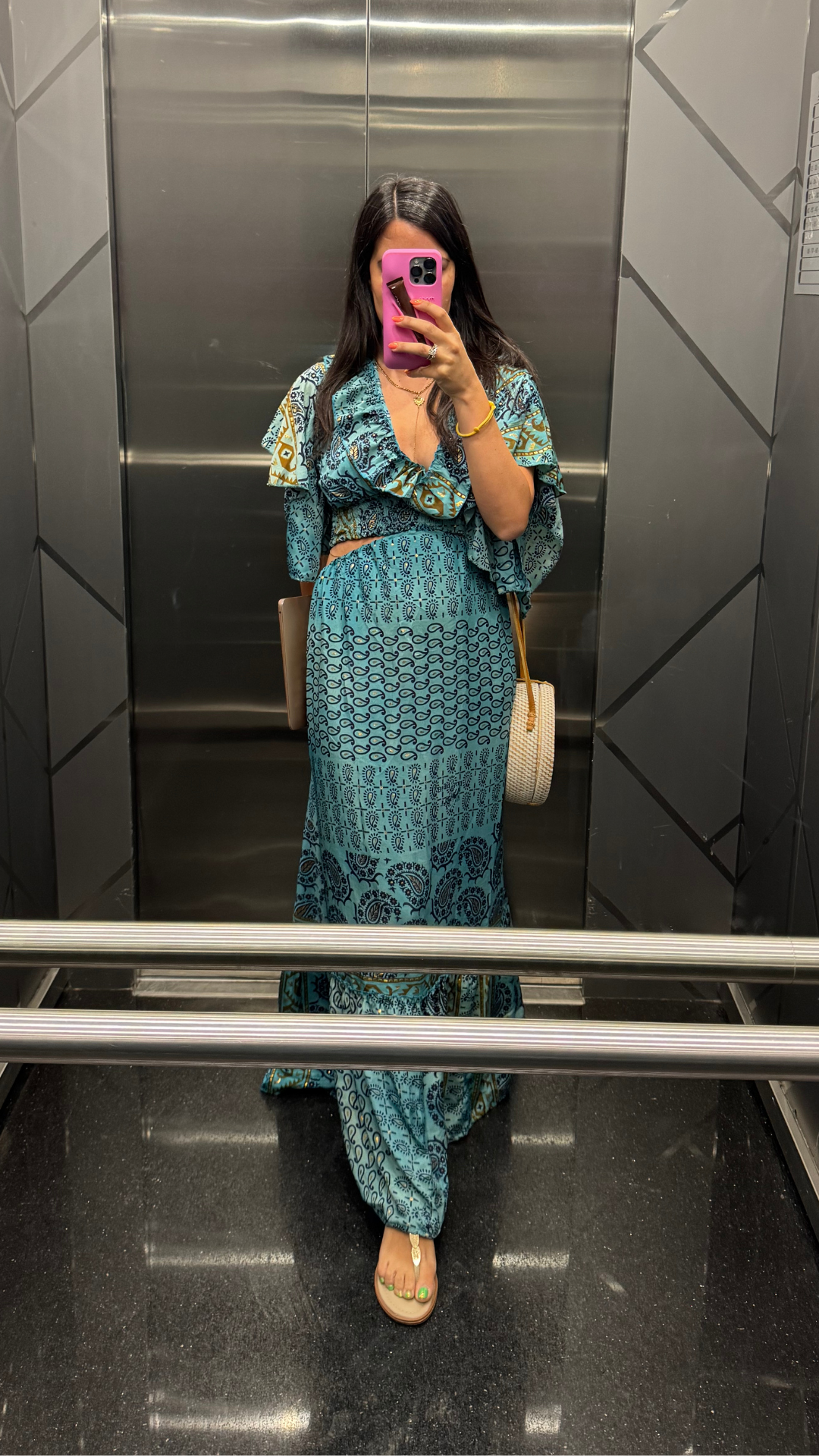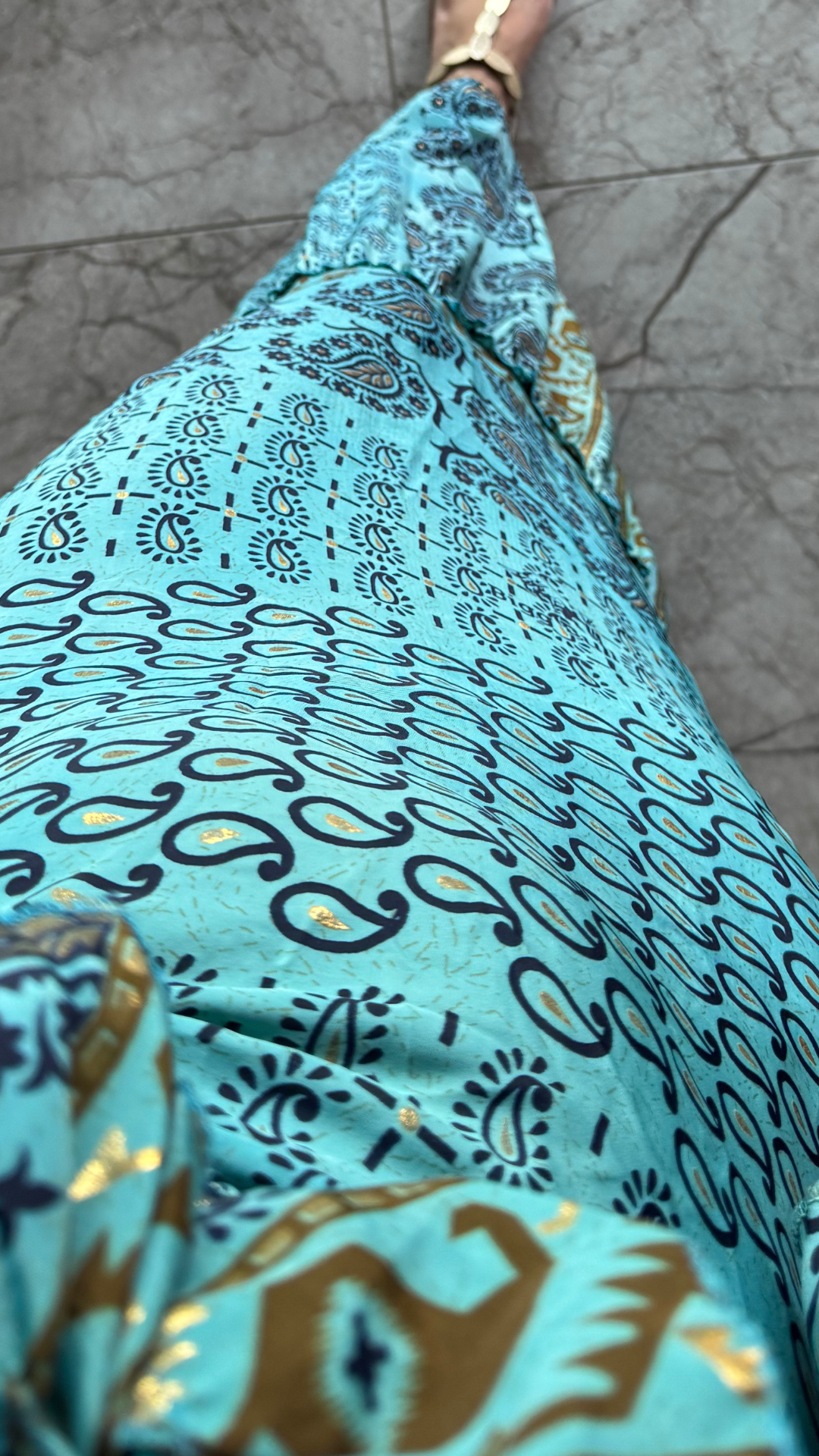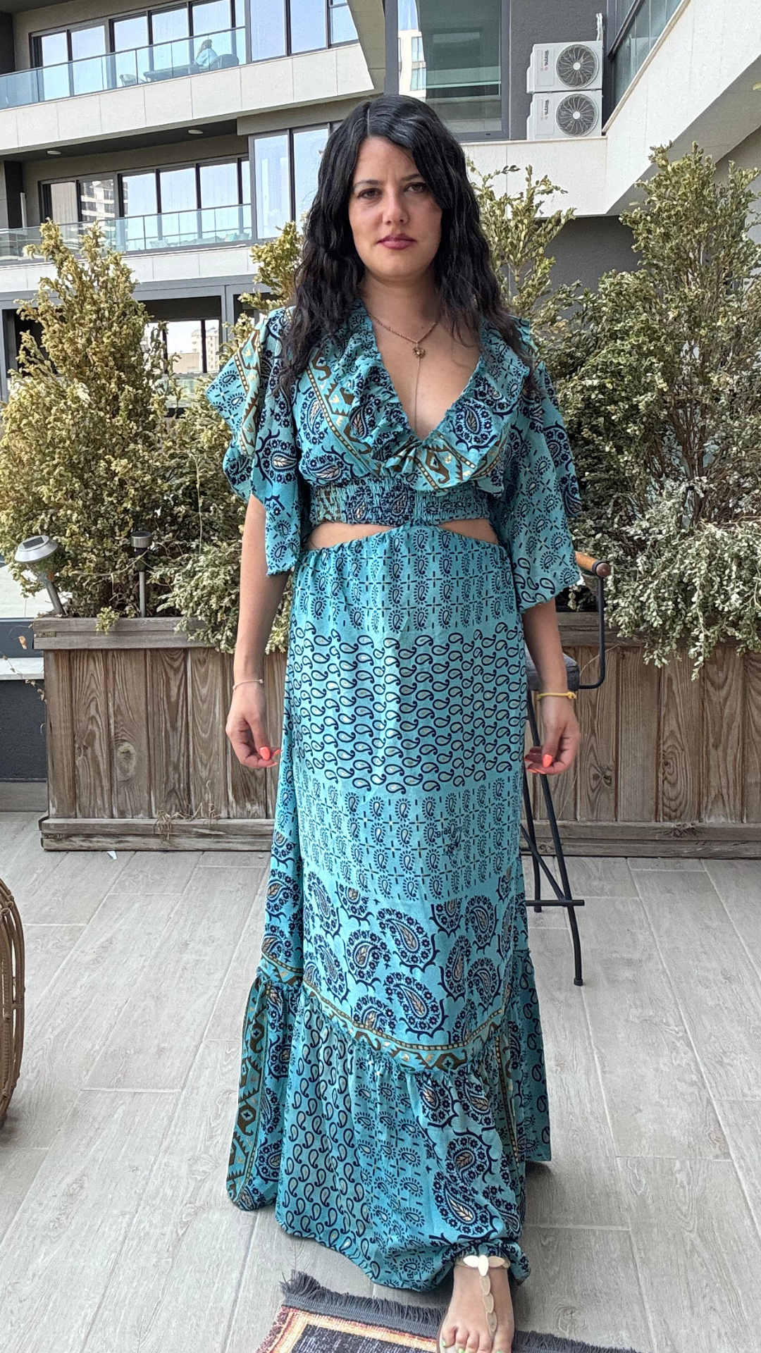 Bel Dekolteli Şal Desenli İthal Elbise standart bedendir.