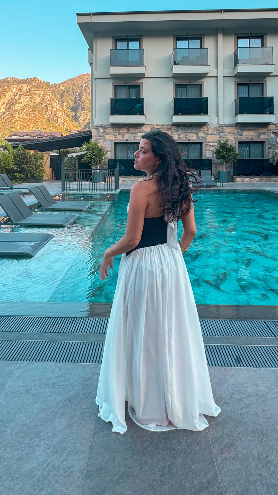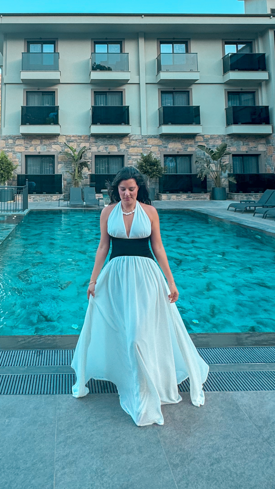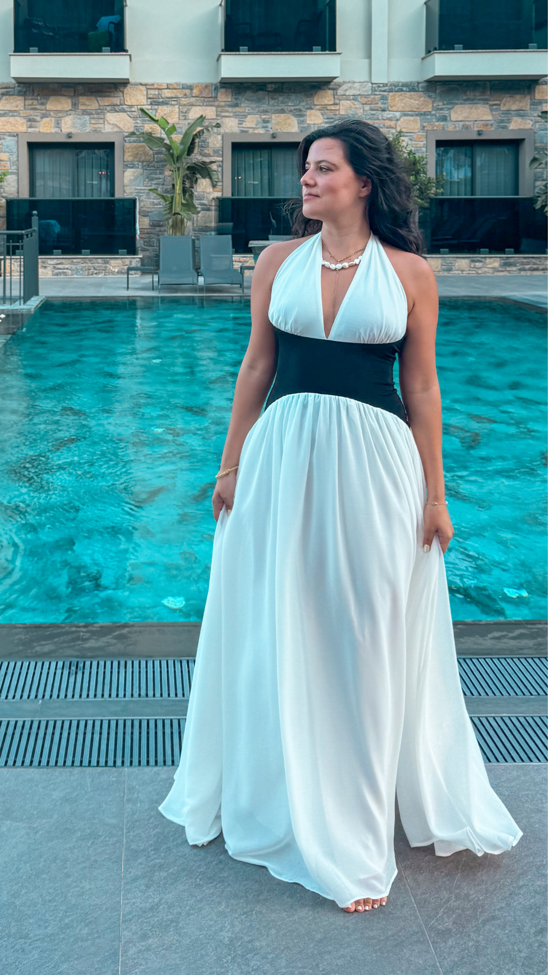 Boyundan Bağlamalı Korse Detaylı Şifon Elbise