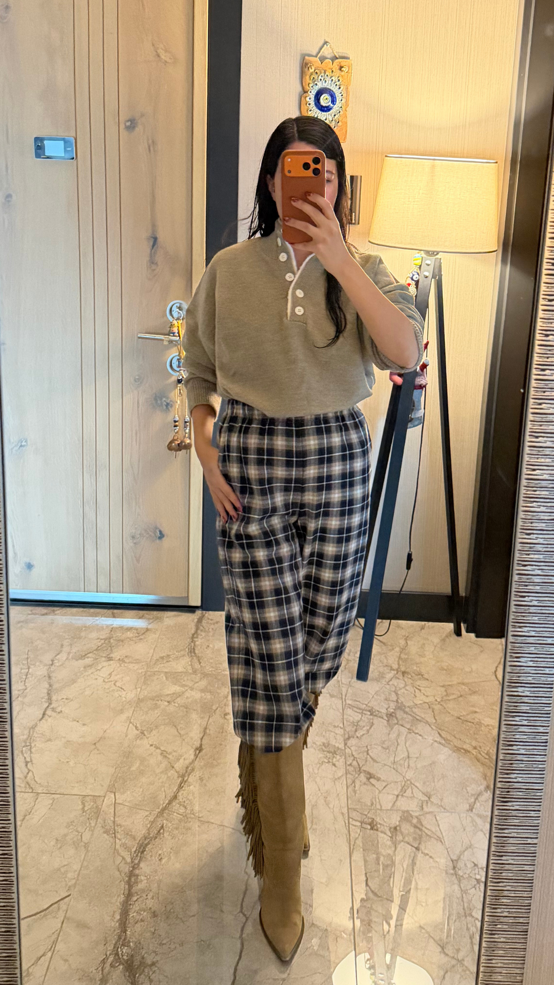 Çift Yakalı Vizon-Krem Kazak Standart bedendir. Kaşındırma yapmaz.