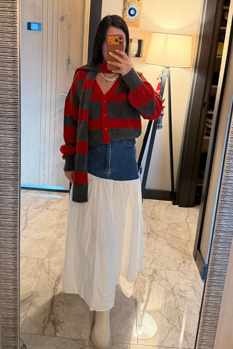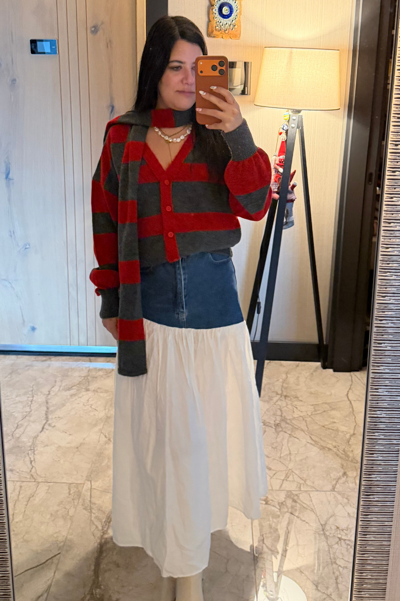 Çizgili Atkılı Hırka Antrasit Kırmızı