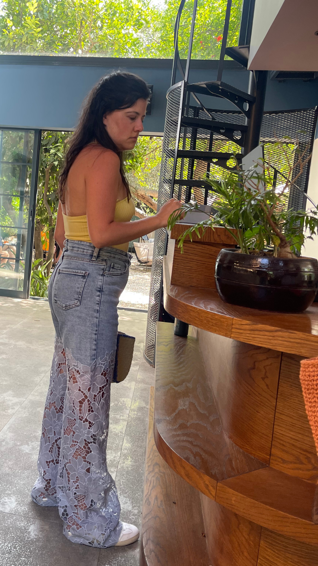 Kumaş Türü : Jean / diz altından itibaren çiçek desenli dantel