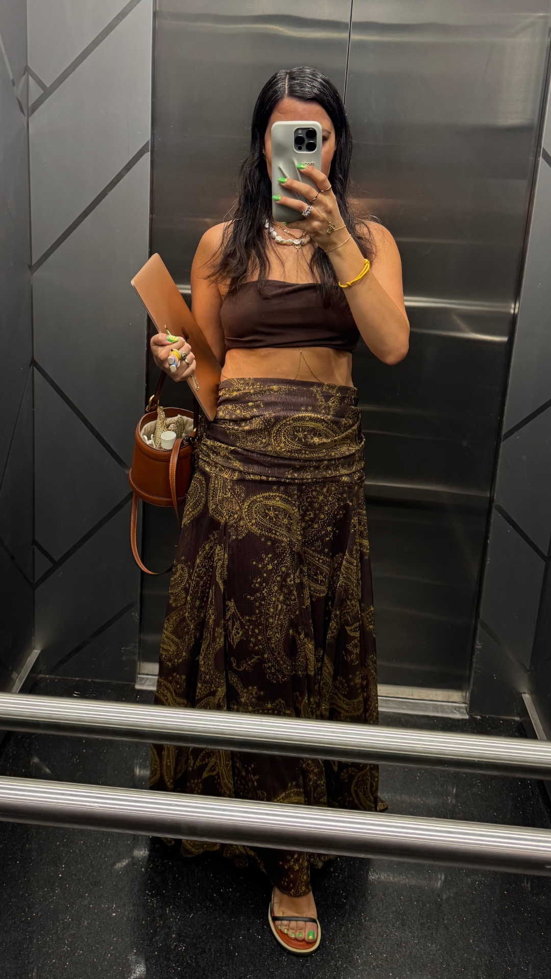 Desenli Drapeli Etek Haki