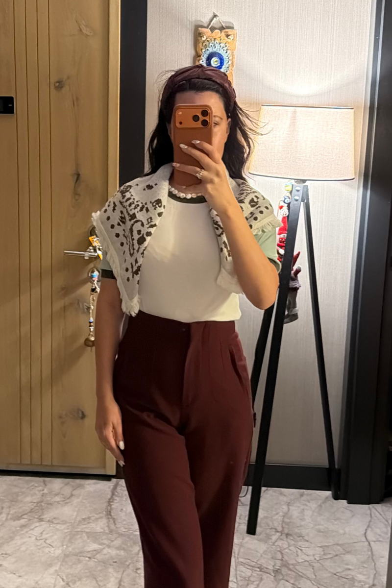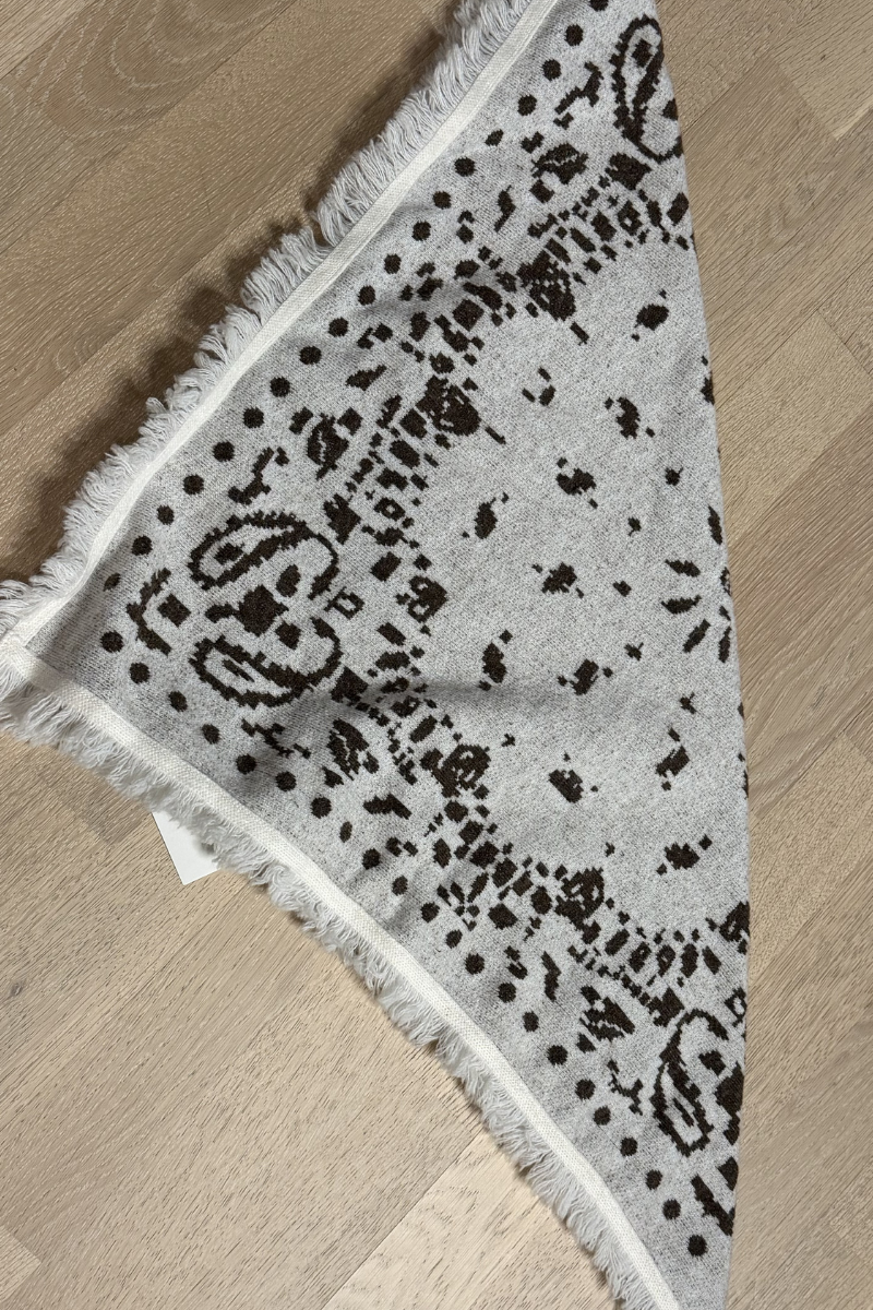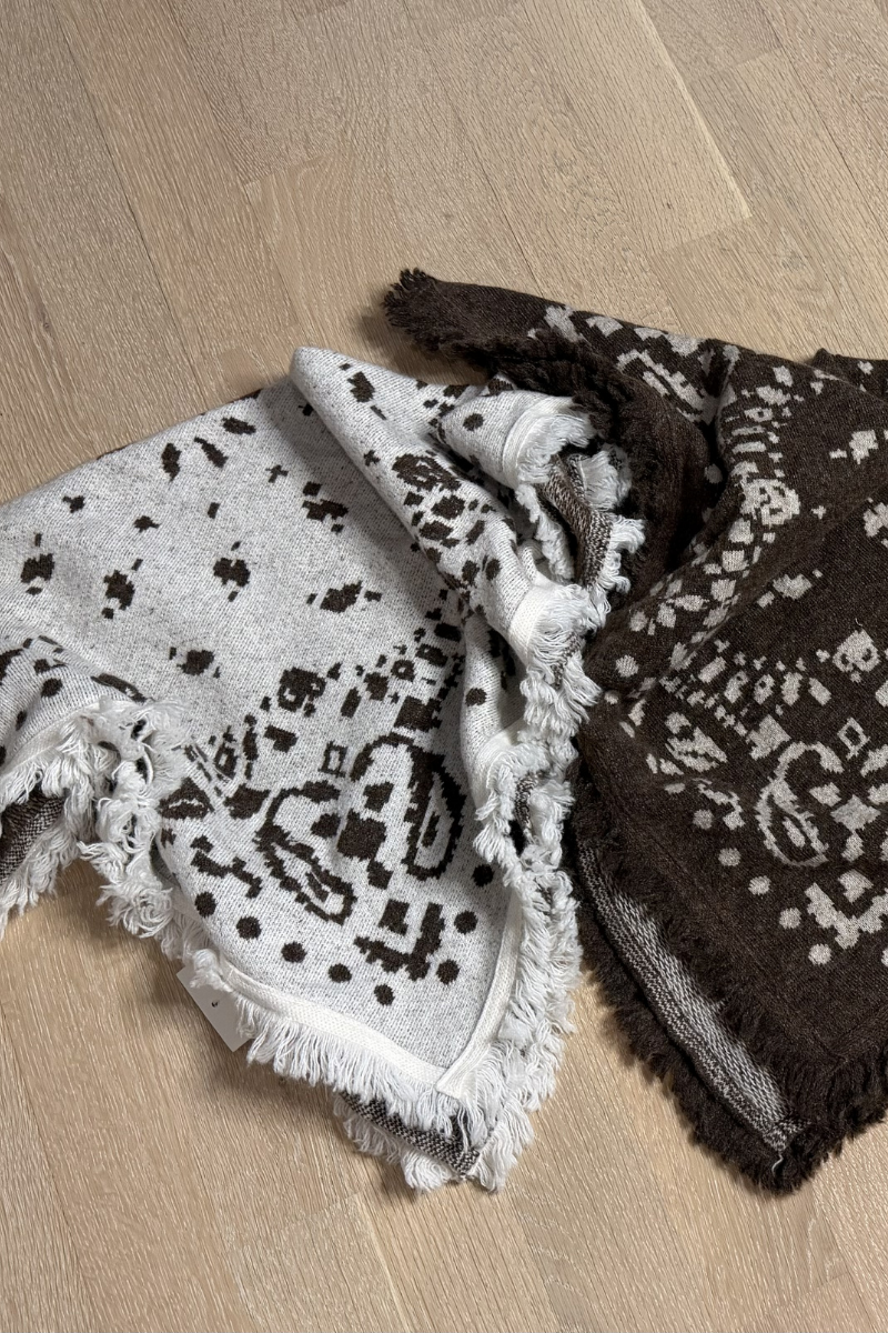 Ekru-Kahve Desenli Triko Şal-Küçük Boy
