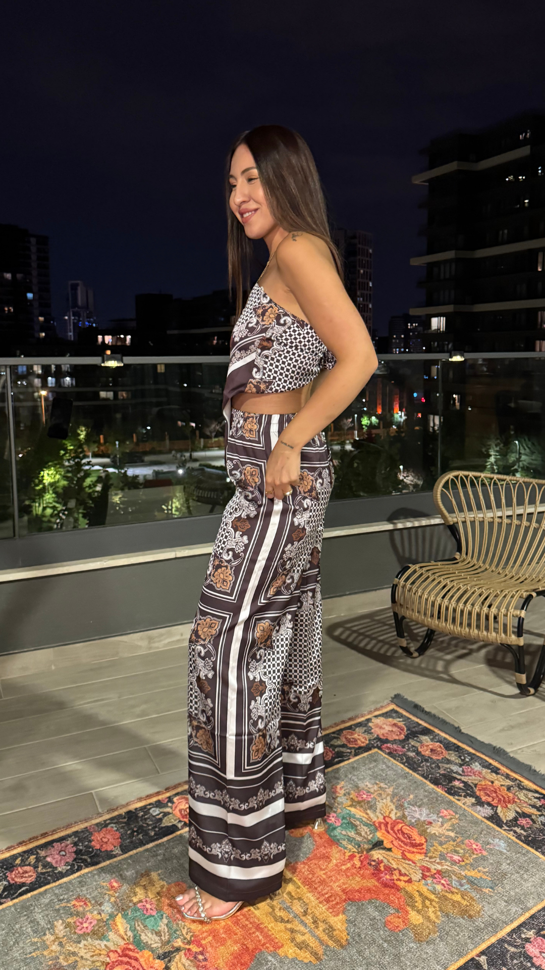 Desenli Üçgen Bluz Pantolon Takım