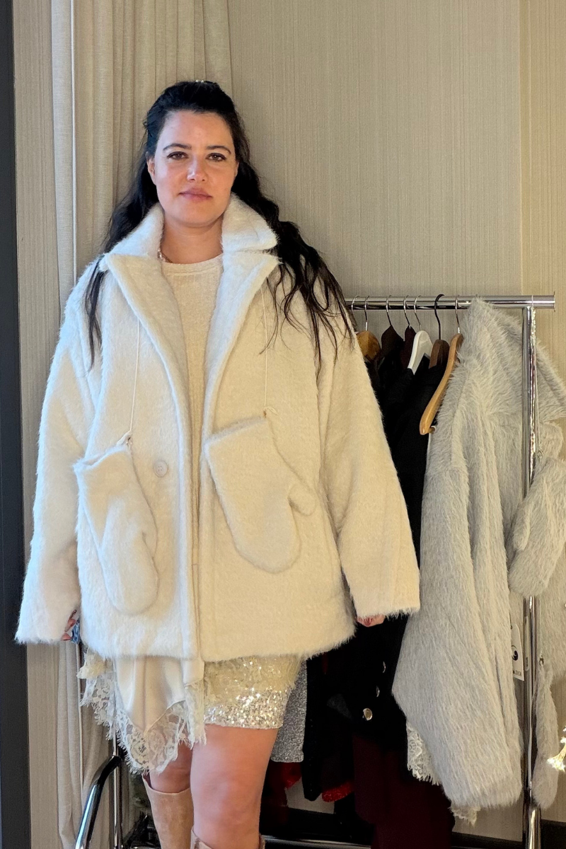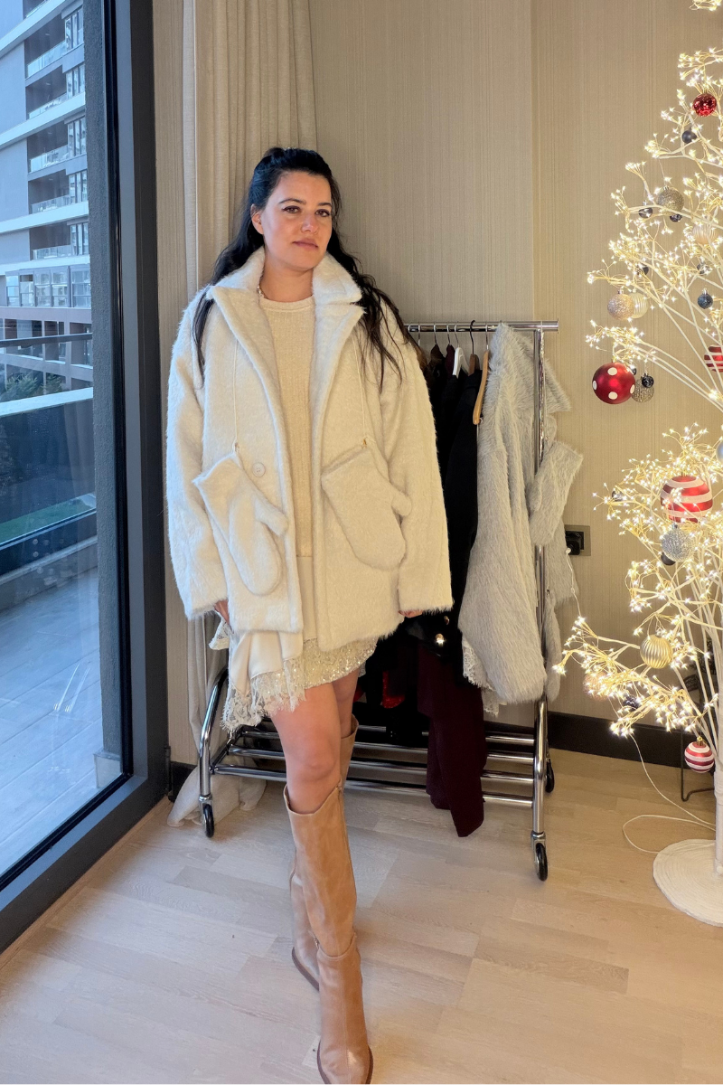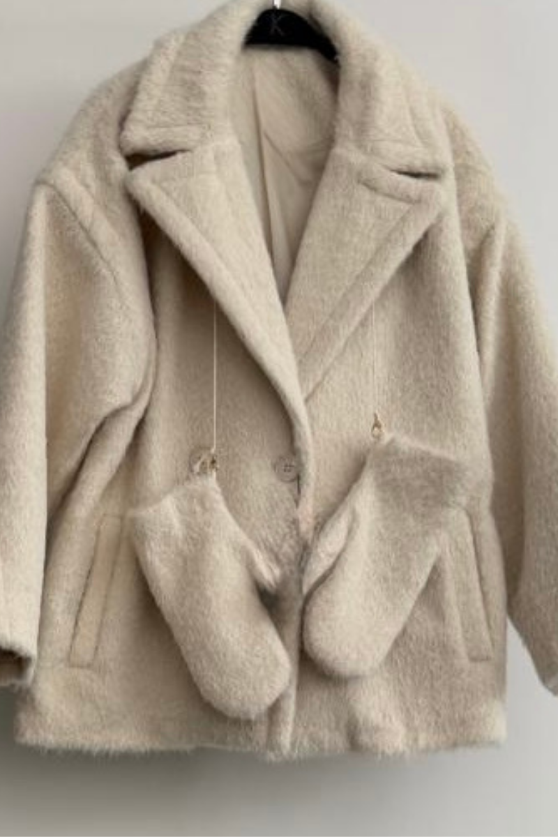 Eldivenli Ekru Mont, Eldiveni ile birlikte gelir. Kumaşı yumuşacıktır.