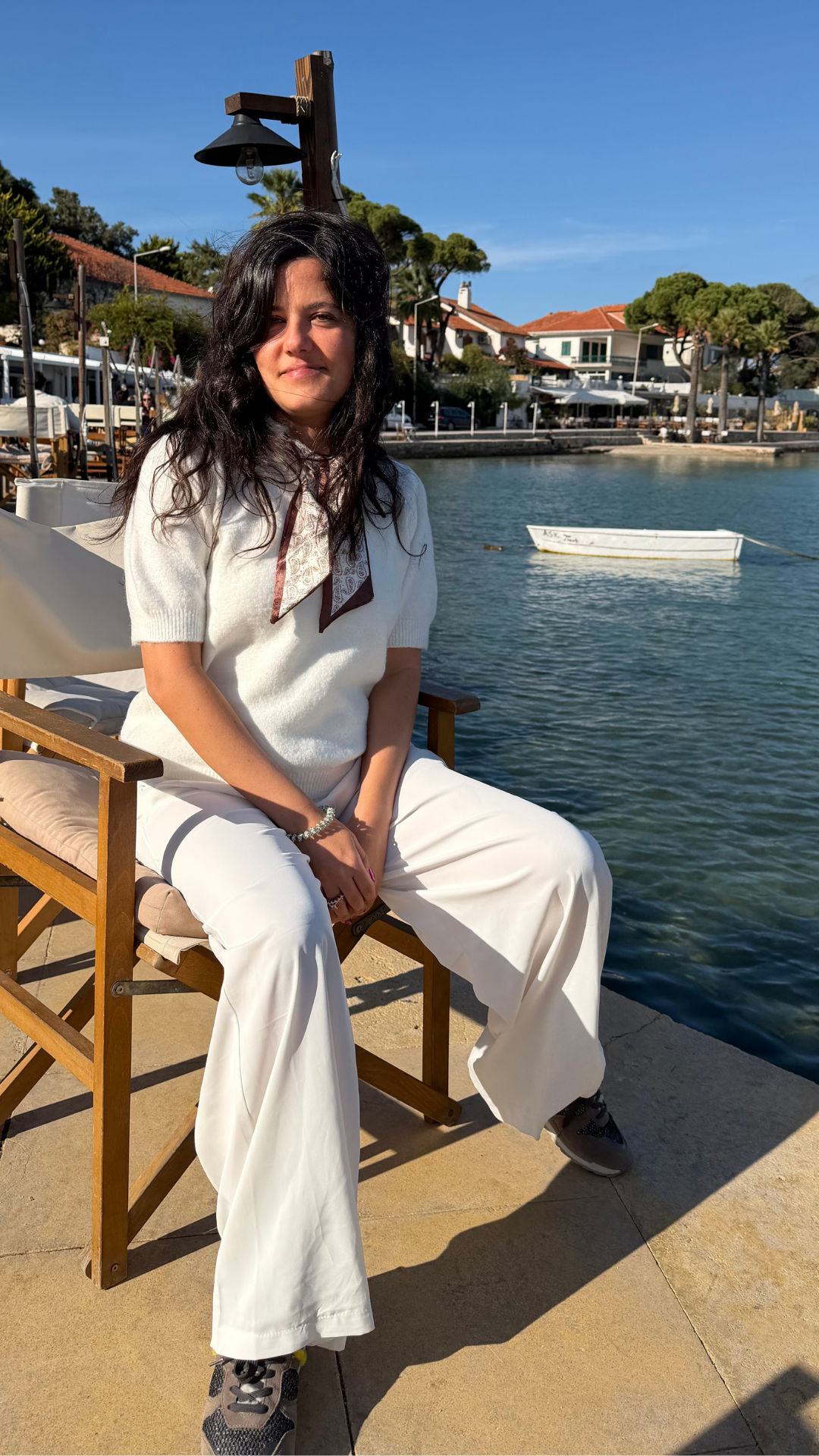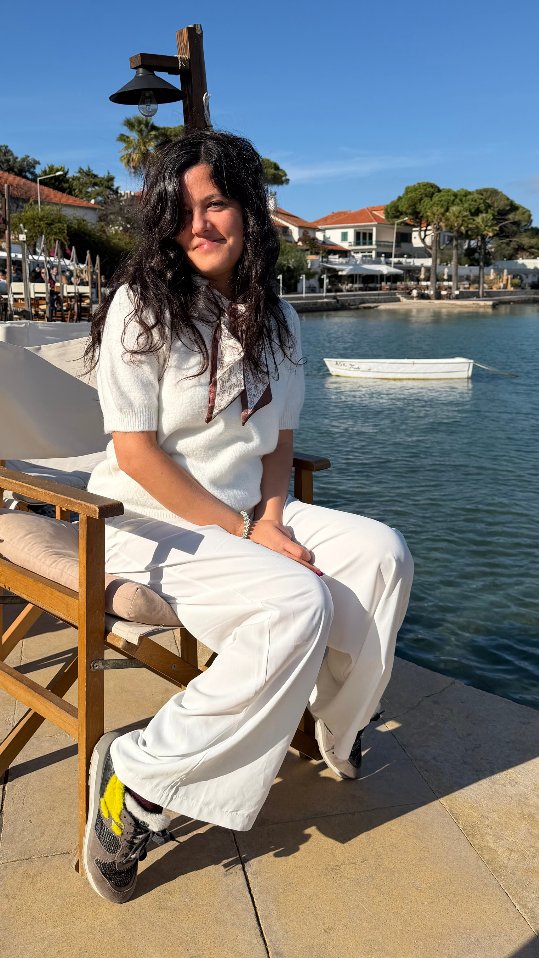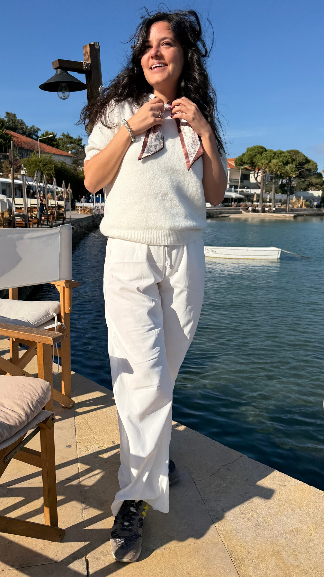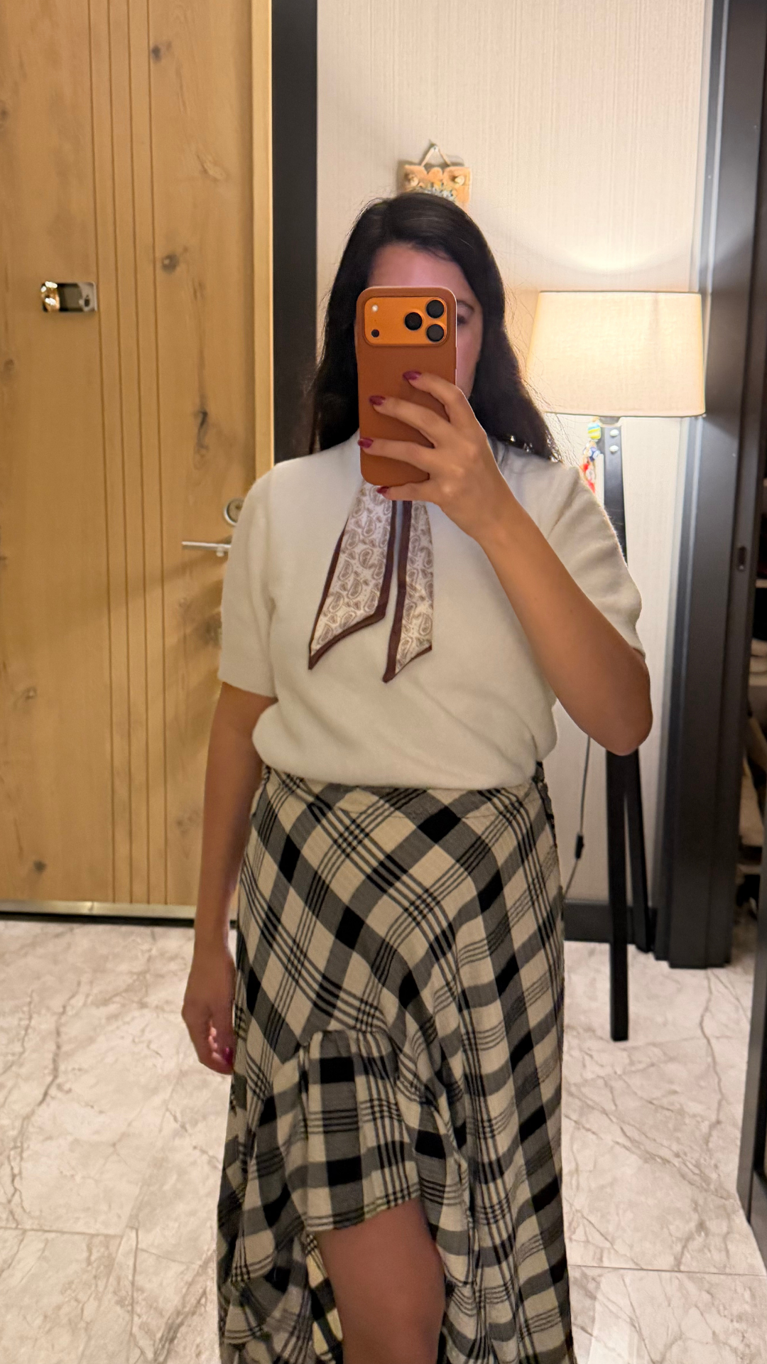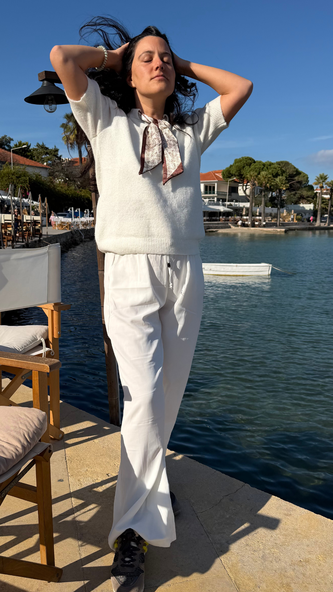 Fularlı triko ekru, kaşındırma yapmaz. İç göstermez.