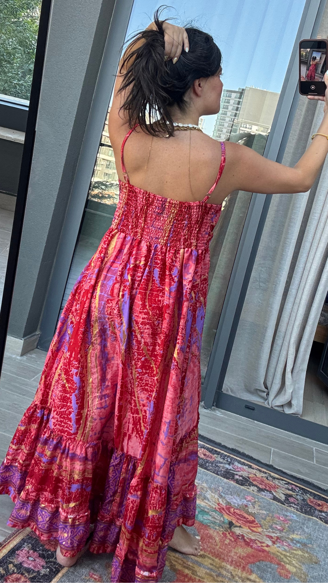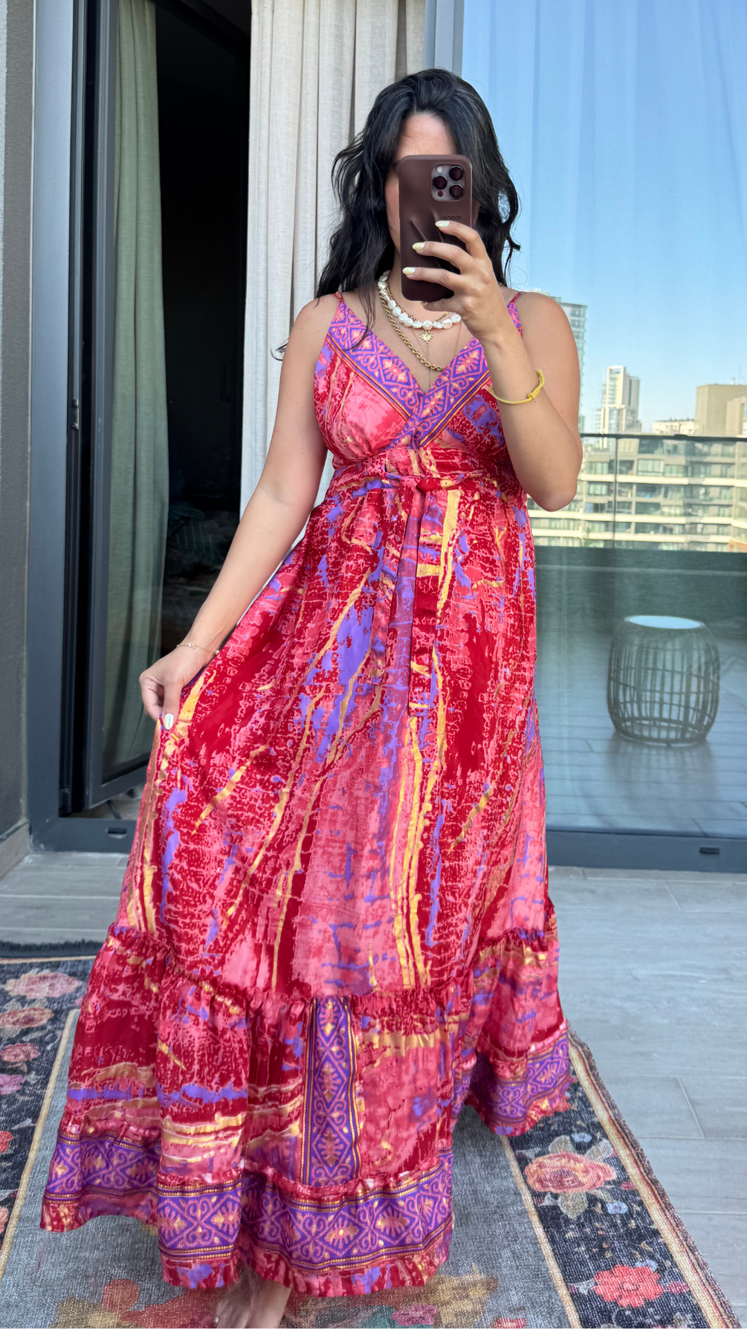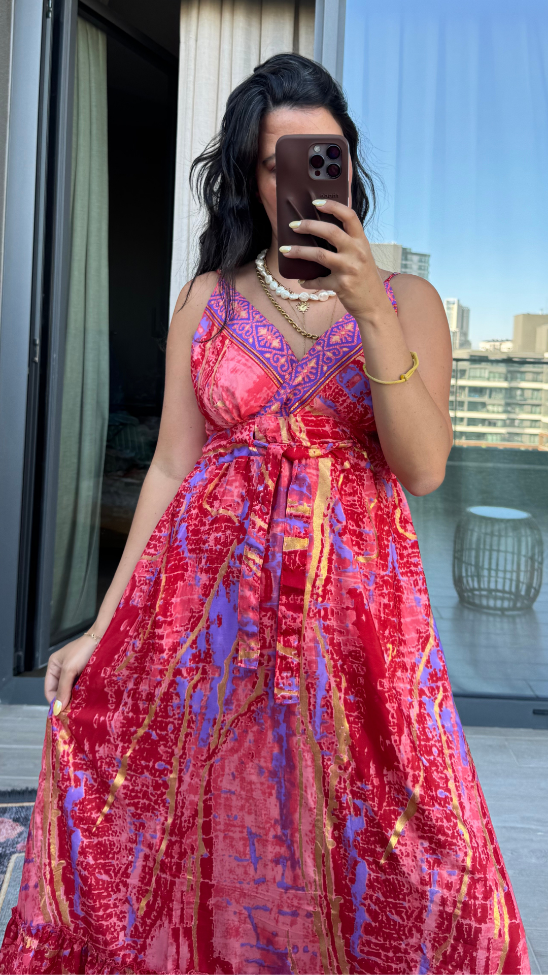 İşlemeli Pembe Mor İthal Elbise