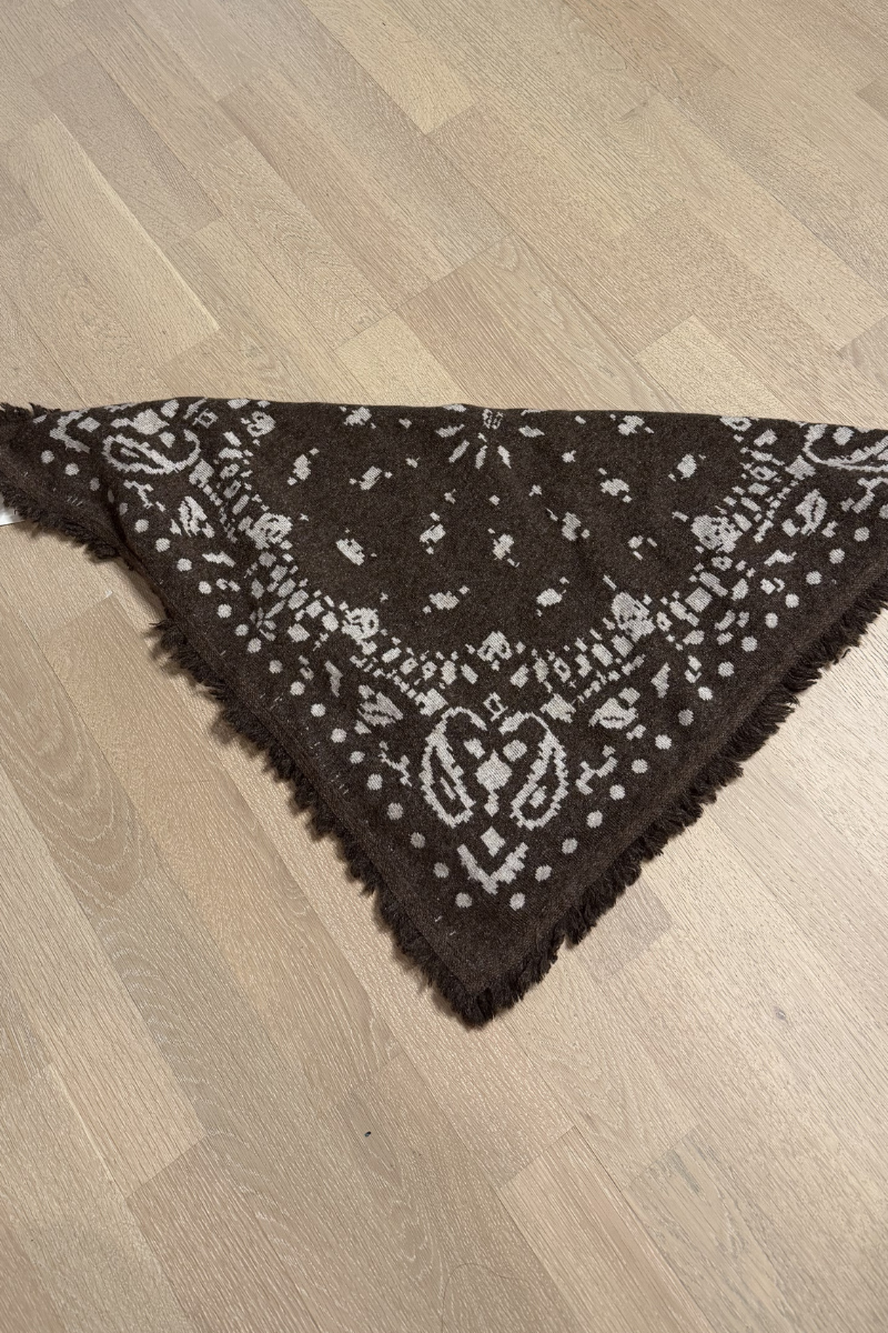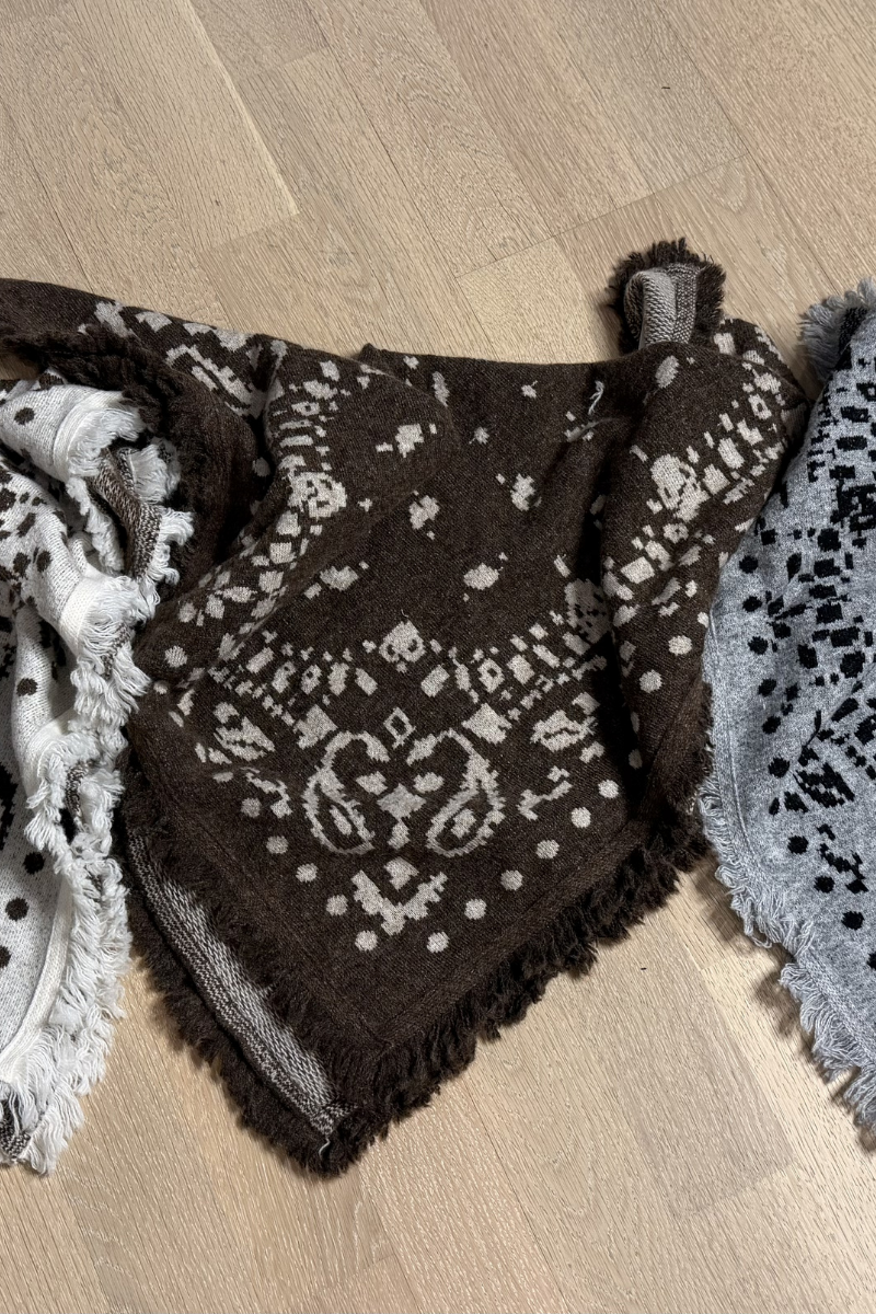 Kahve-Bej Desenli Triko Şal-Küçük boy