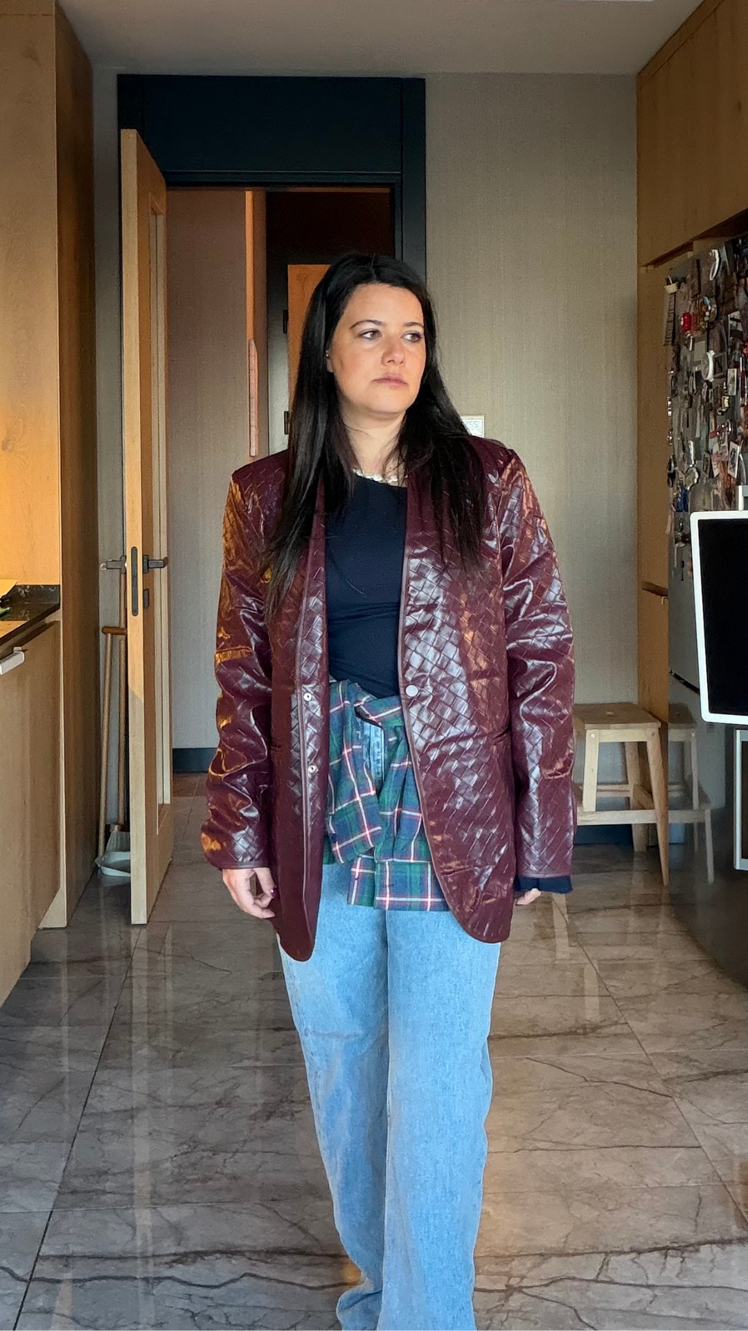 Kemerli Deri Ceket Mürdüm