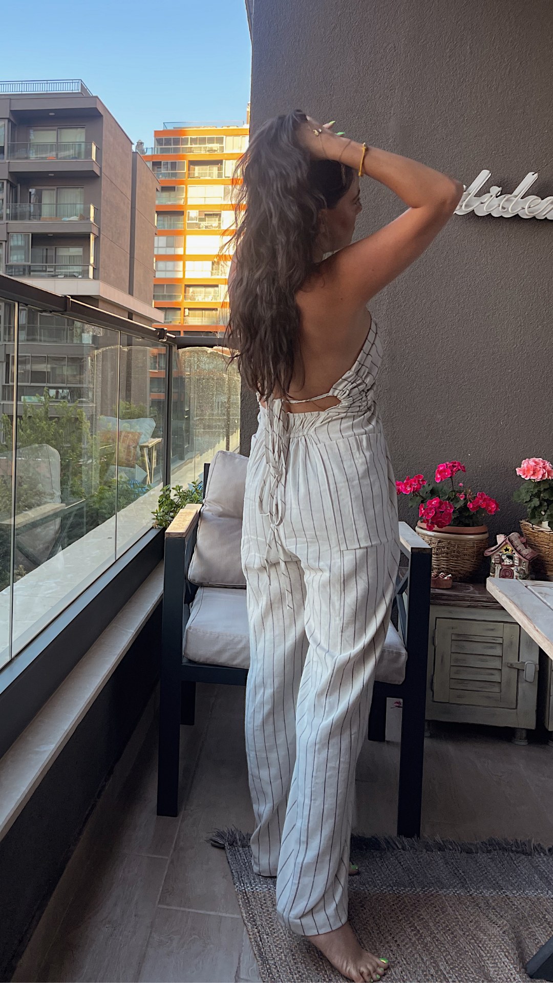 Keten Sırt Ve Göğüs Dekolteli Tulum
