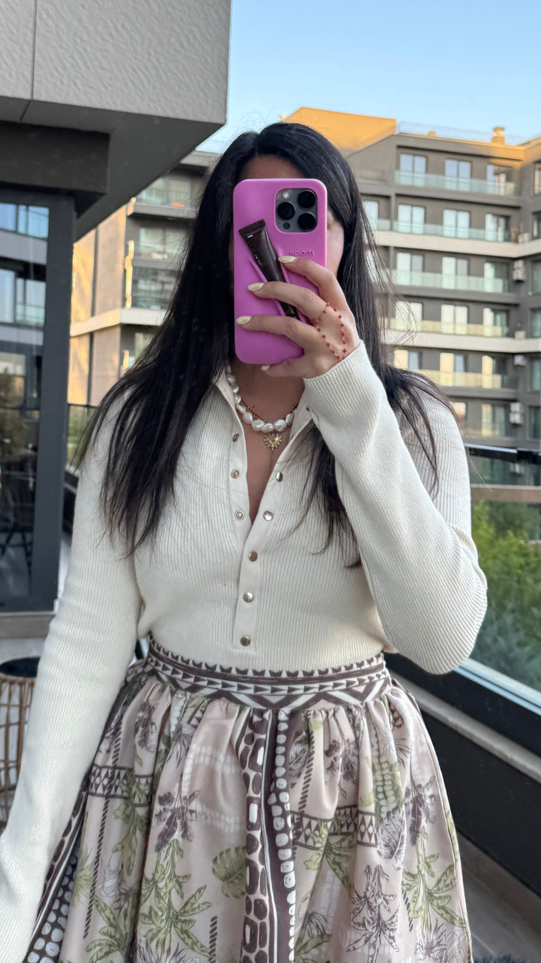 Krem Dik Yakalı Çıtçıtlı Triko