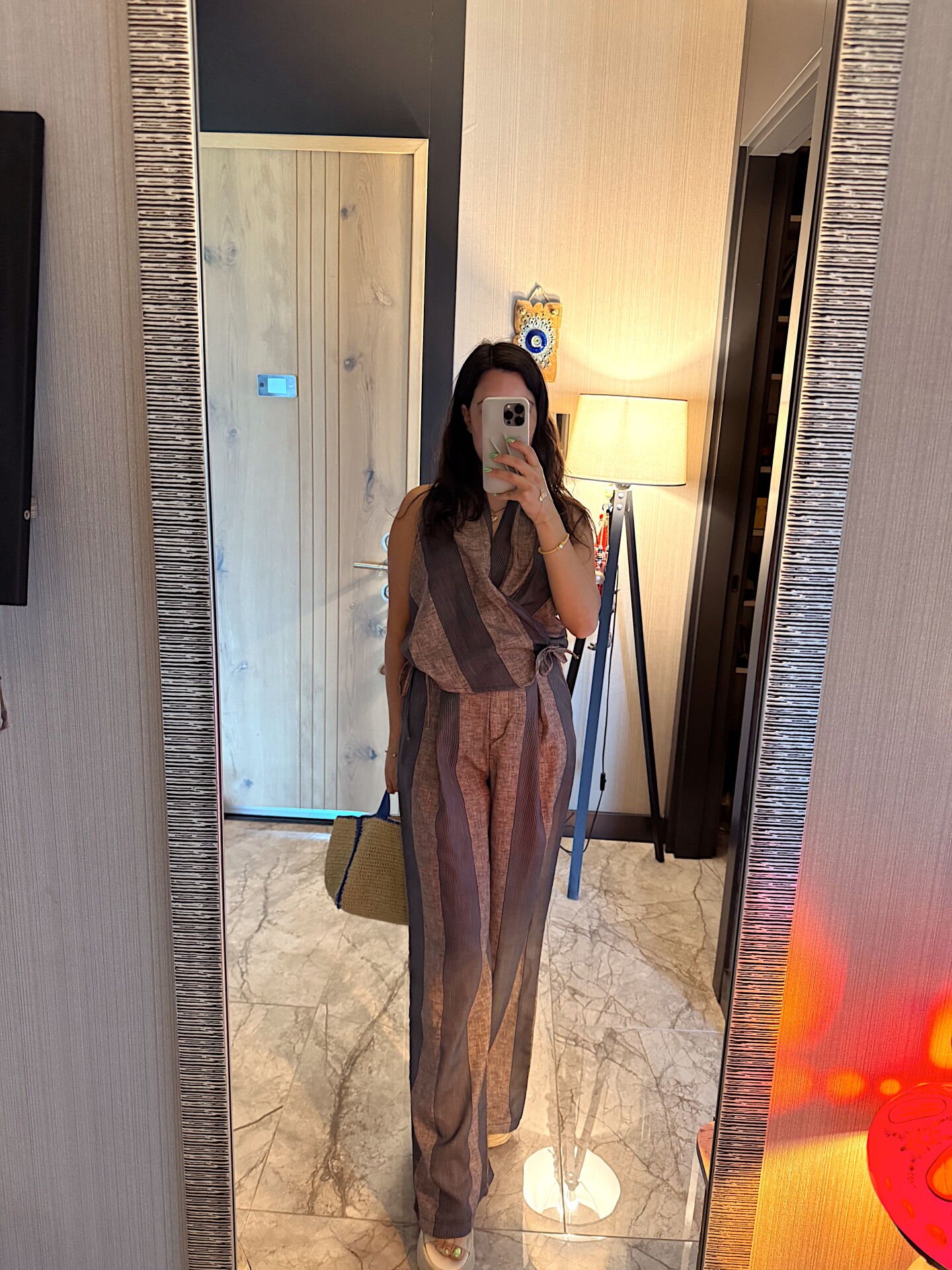 Krem Siyah Çizgili Keten Marka Muadil Pantolon