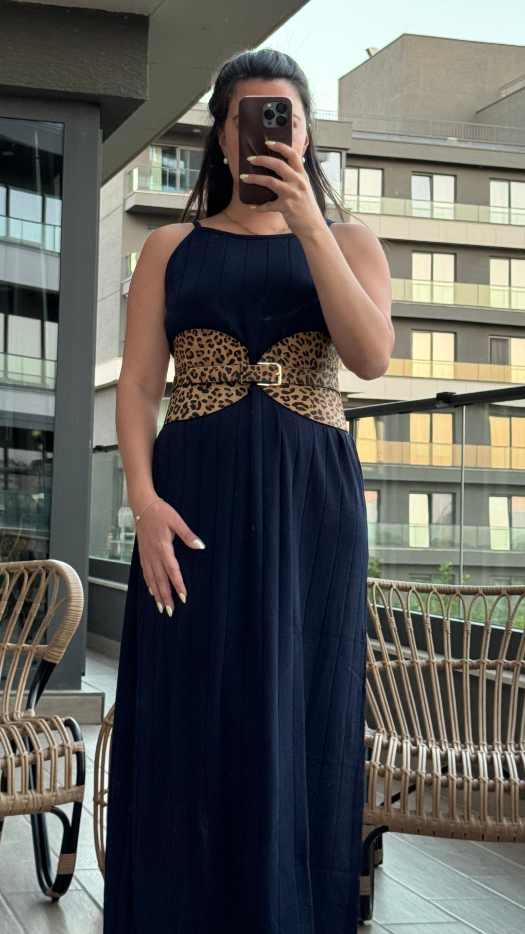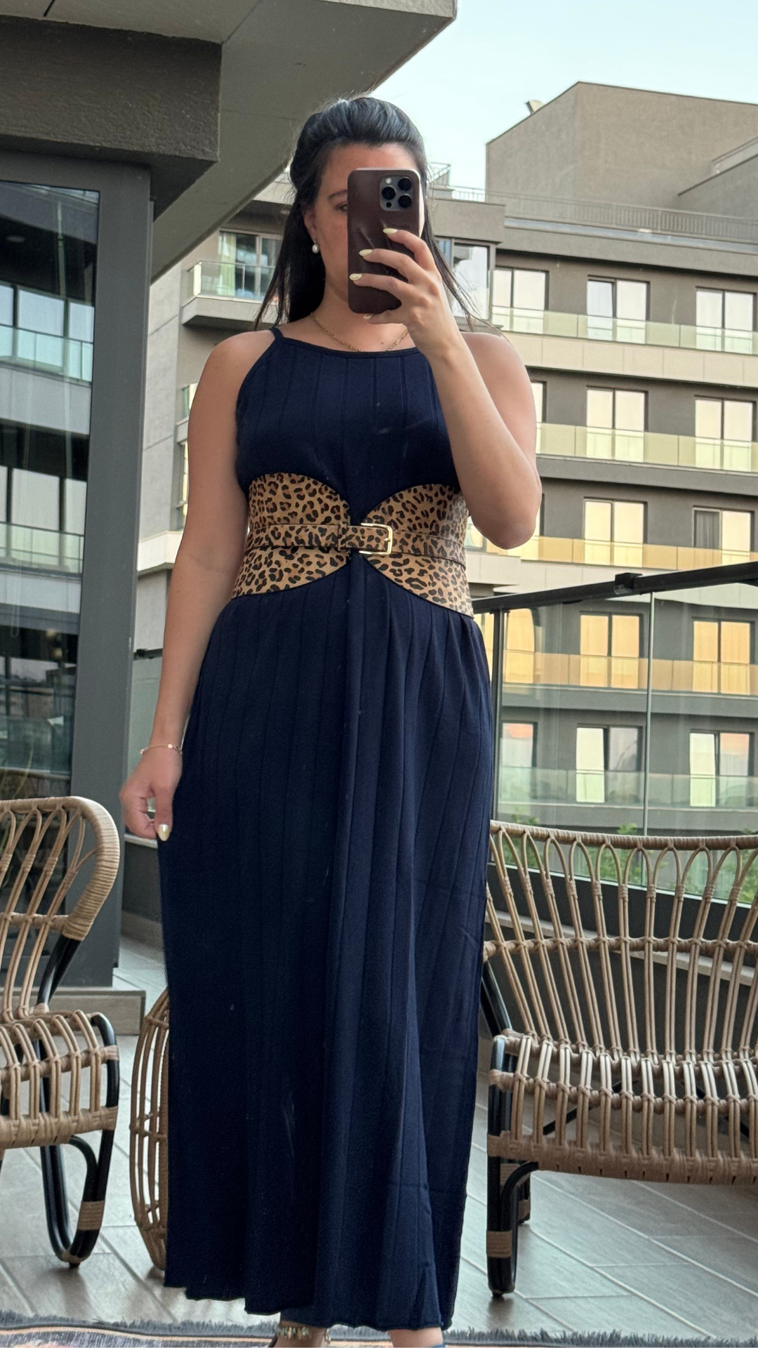 Lacivert Uzun Triko Elbise standart bedendir. Kemer dahil değildir.