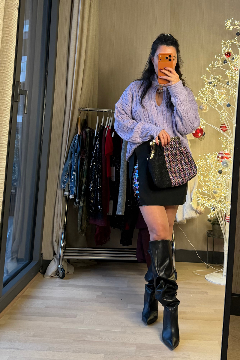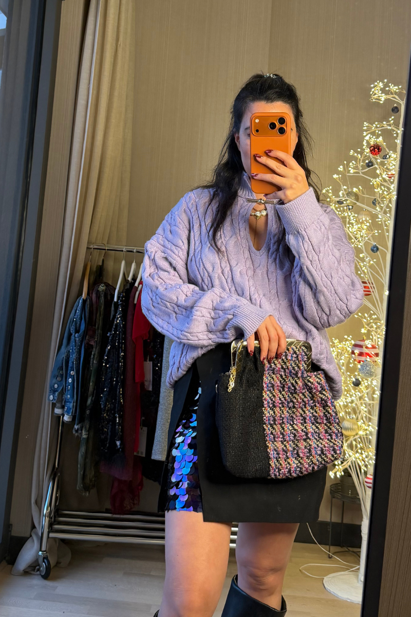 Mor Yansımalı Payet Detaylı Siyah Etek