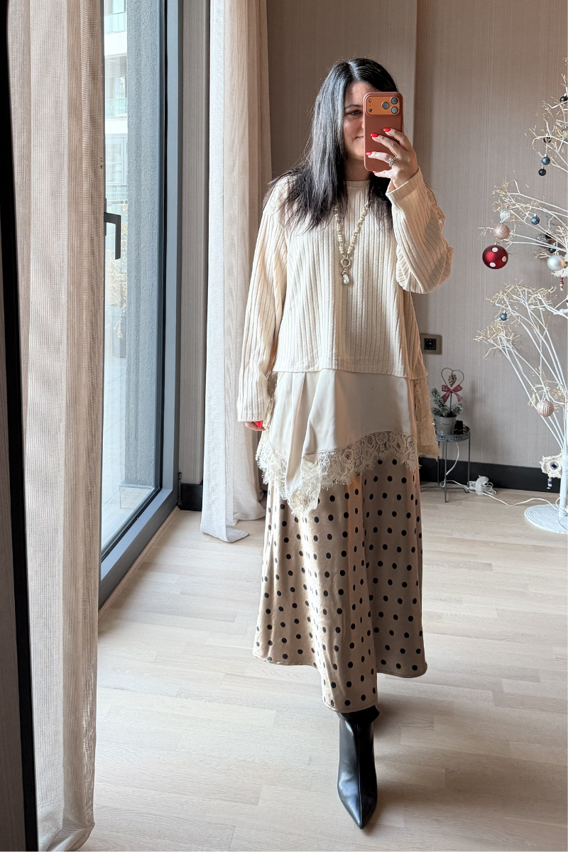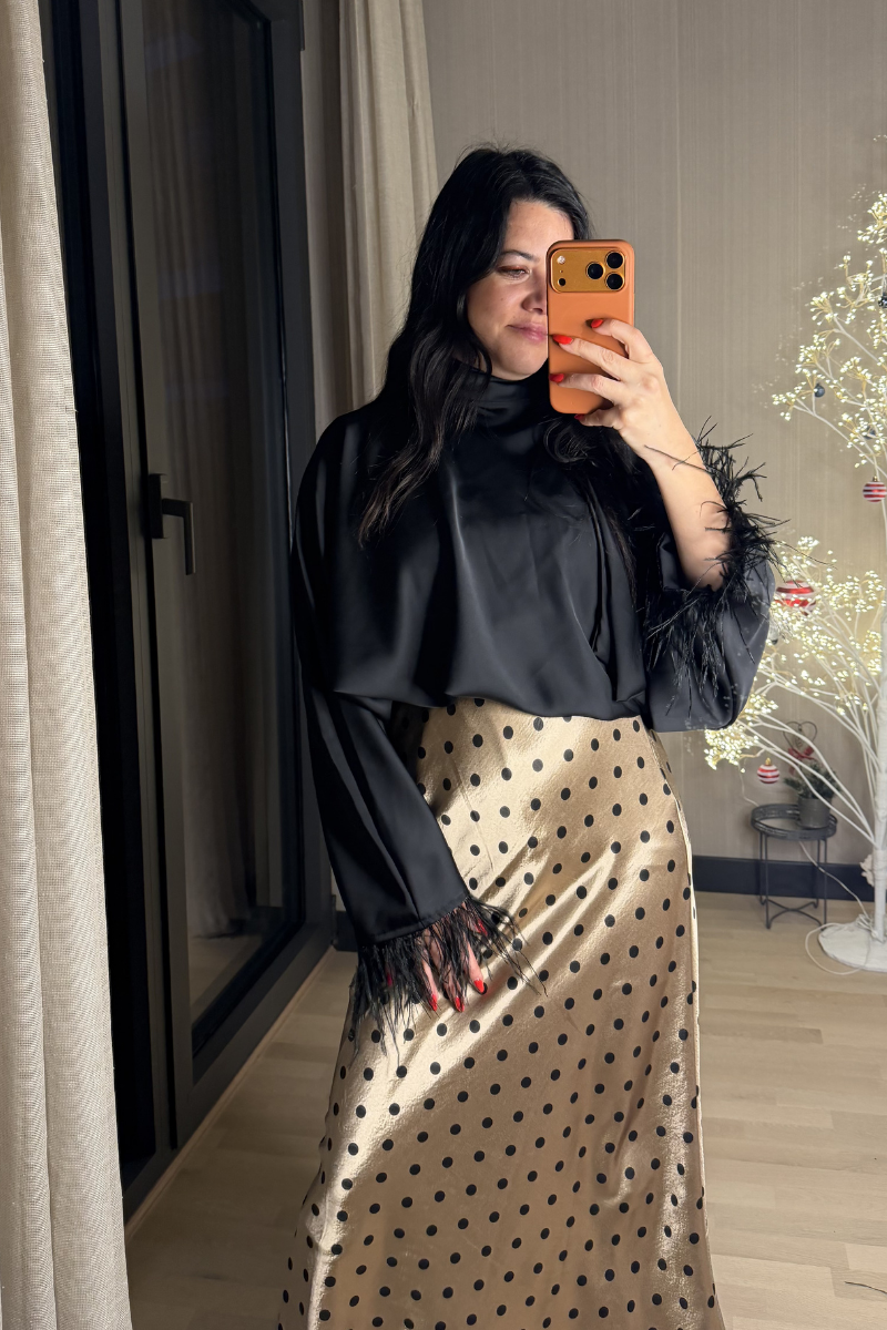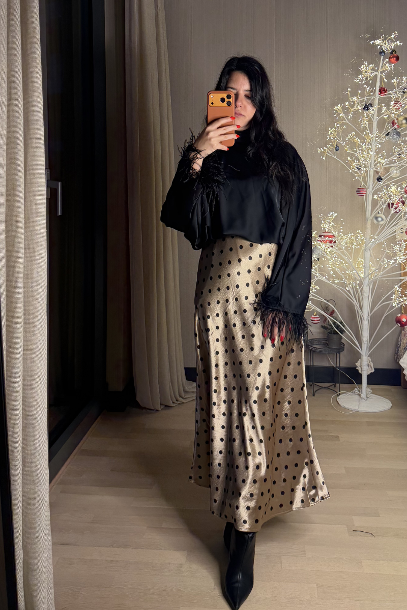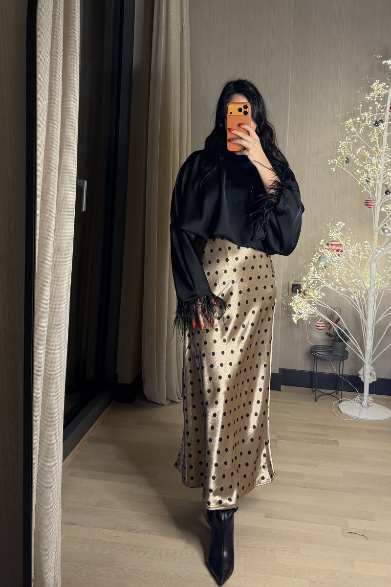Puantiyeli Uzun Saten Etek