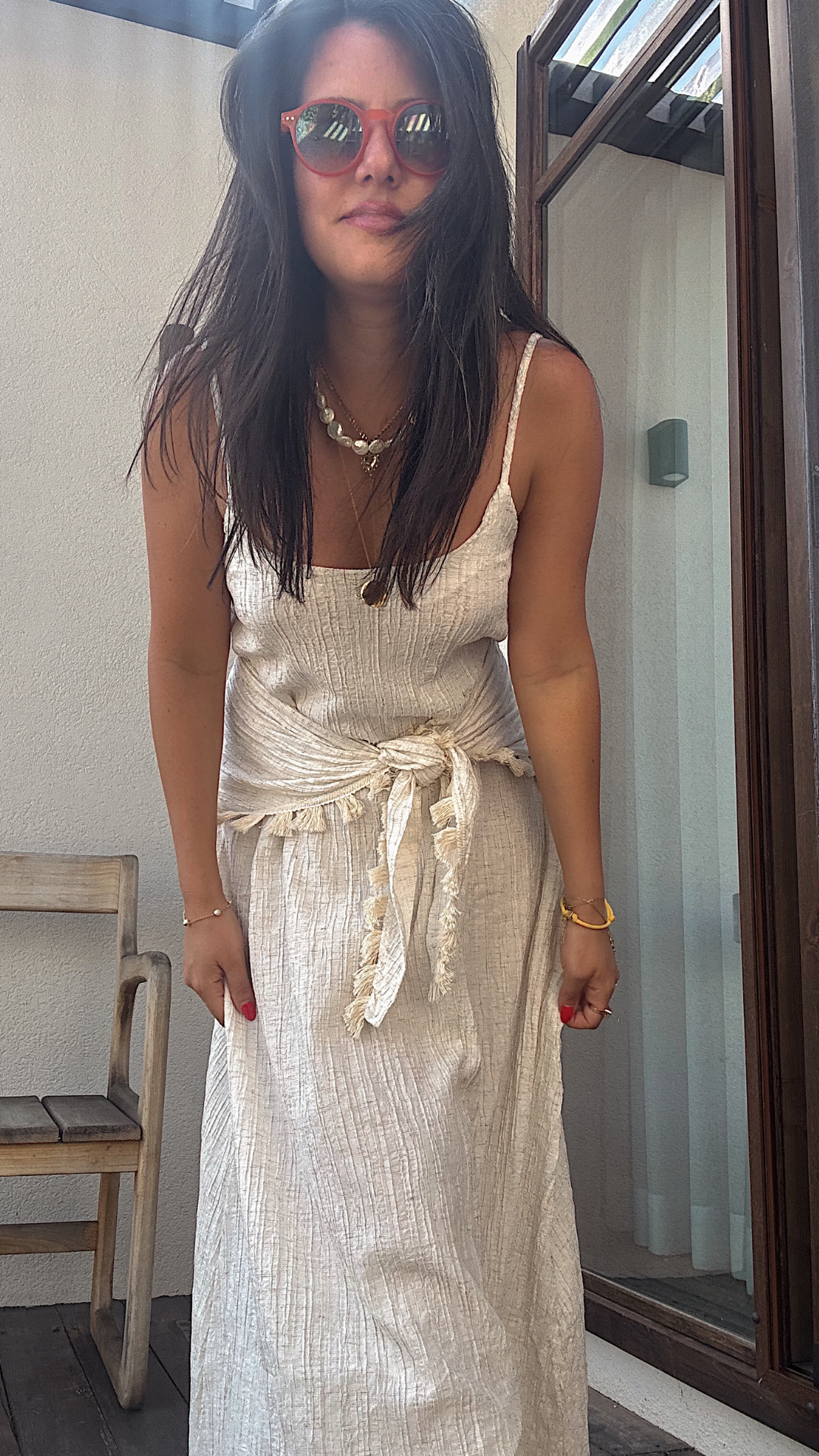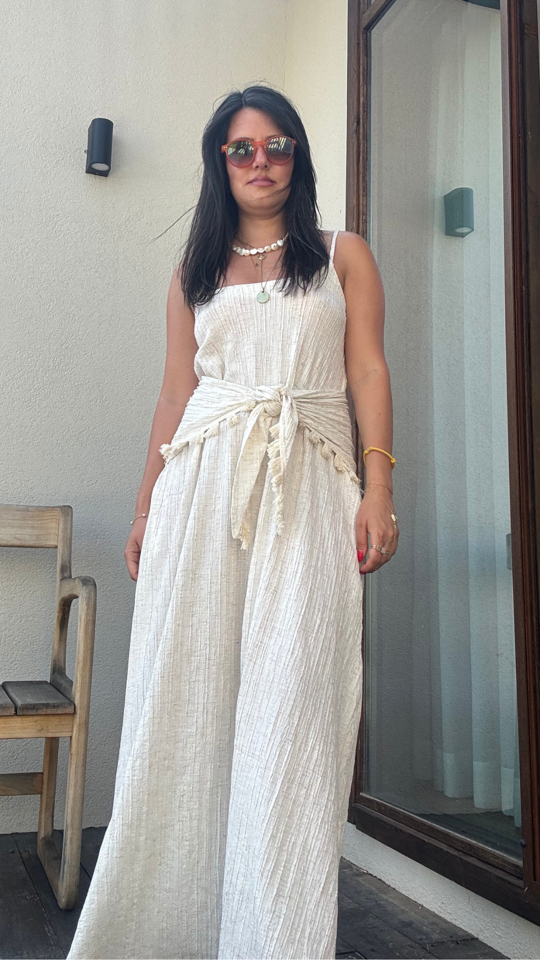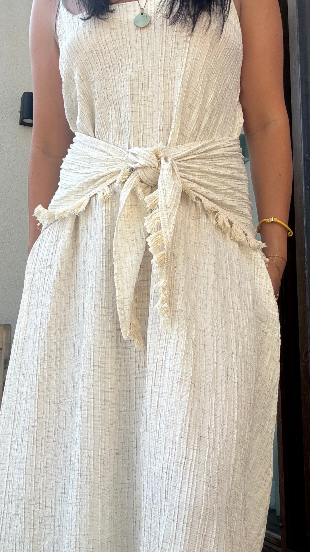 Şal Detaylı Keten Elbise