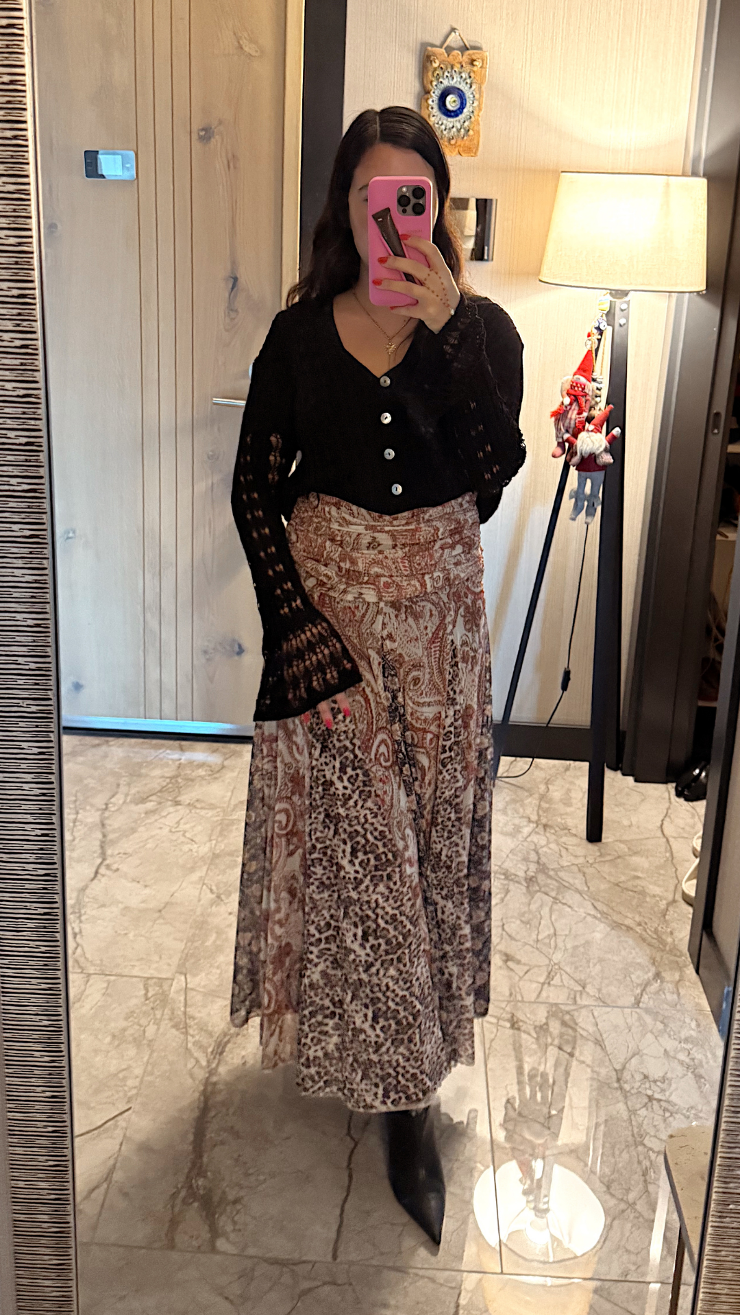 Sedef Düğmeli Ajurlu Kolları Volanlı Mevsimlik Hırka