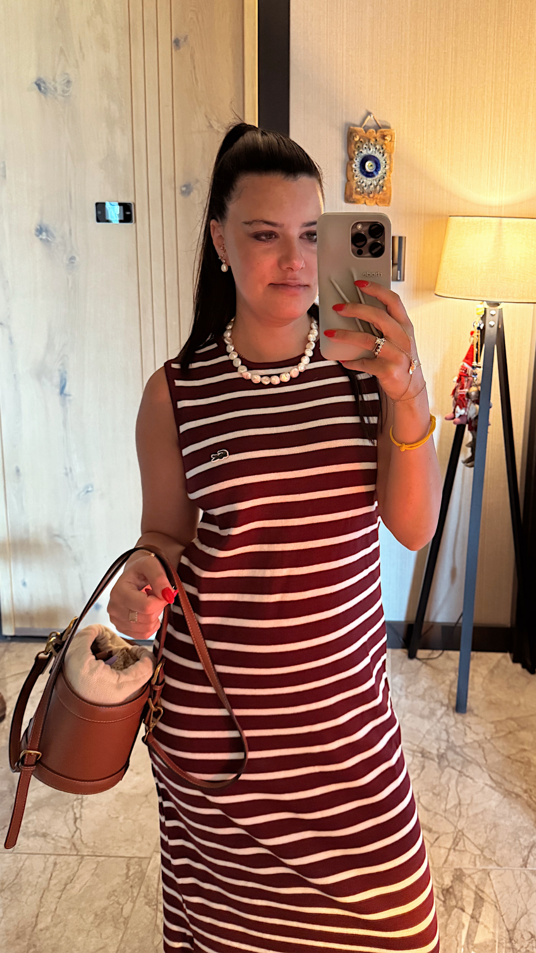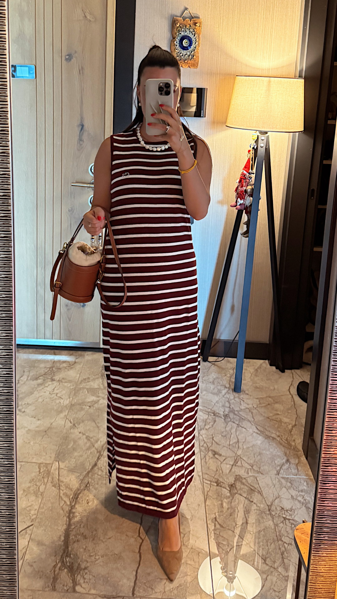 Sıfır Yaka Çizgili Maxi Premium Marka Elbise