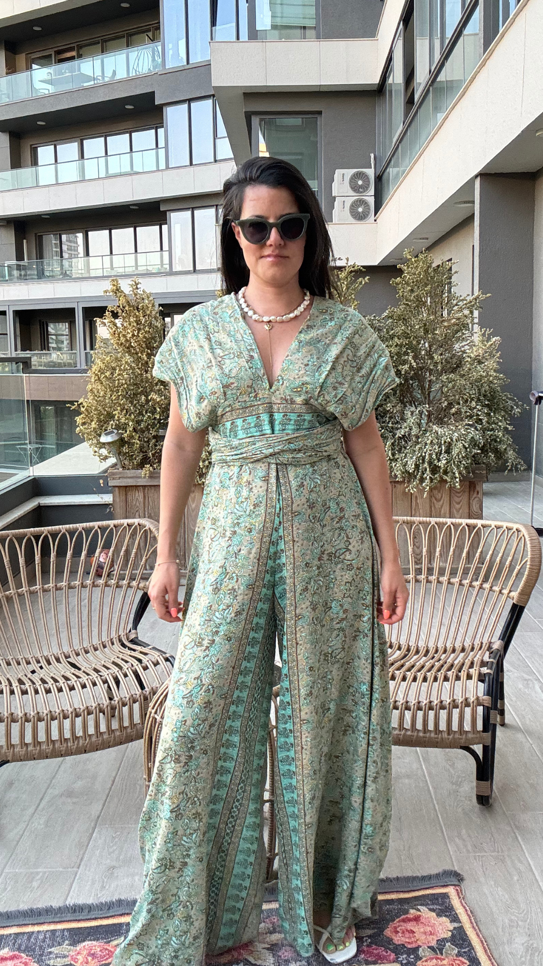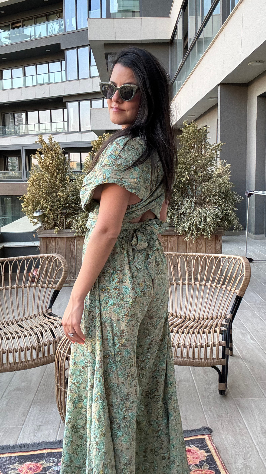 Sırt Dekolteli Etnik Desenli Tulum