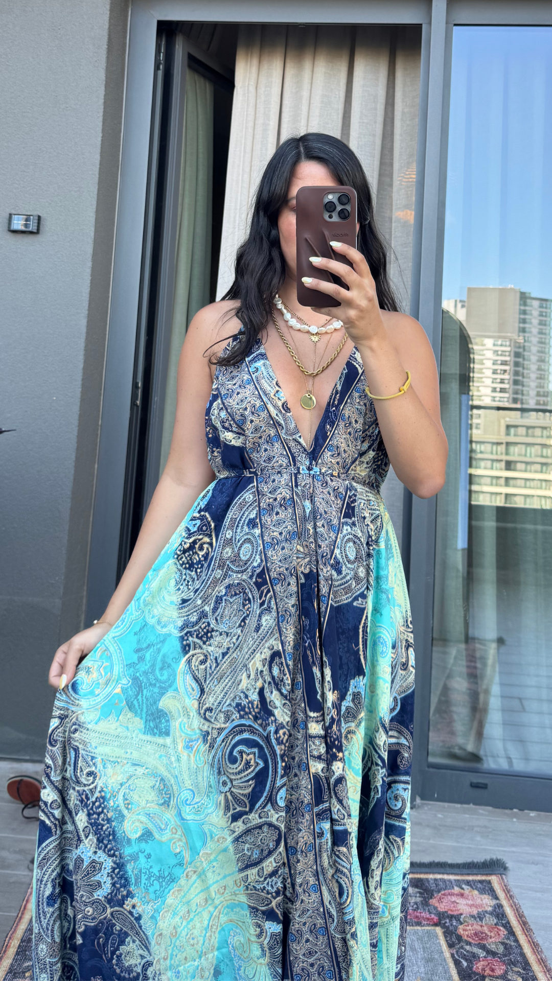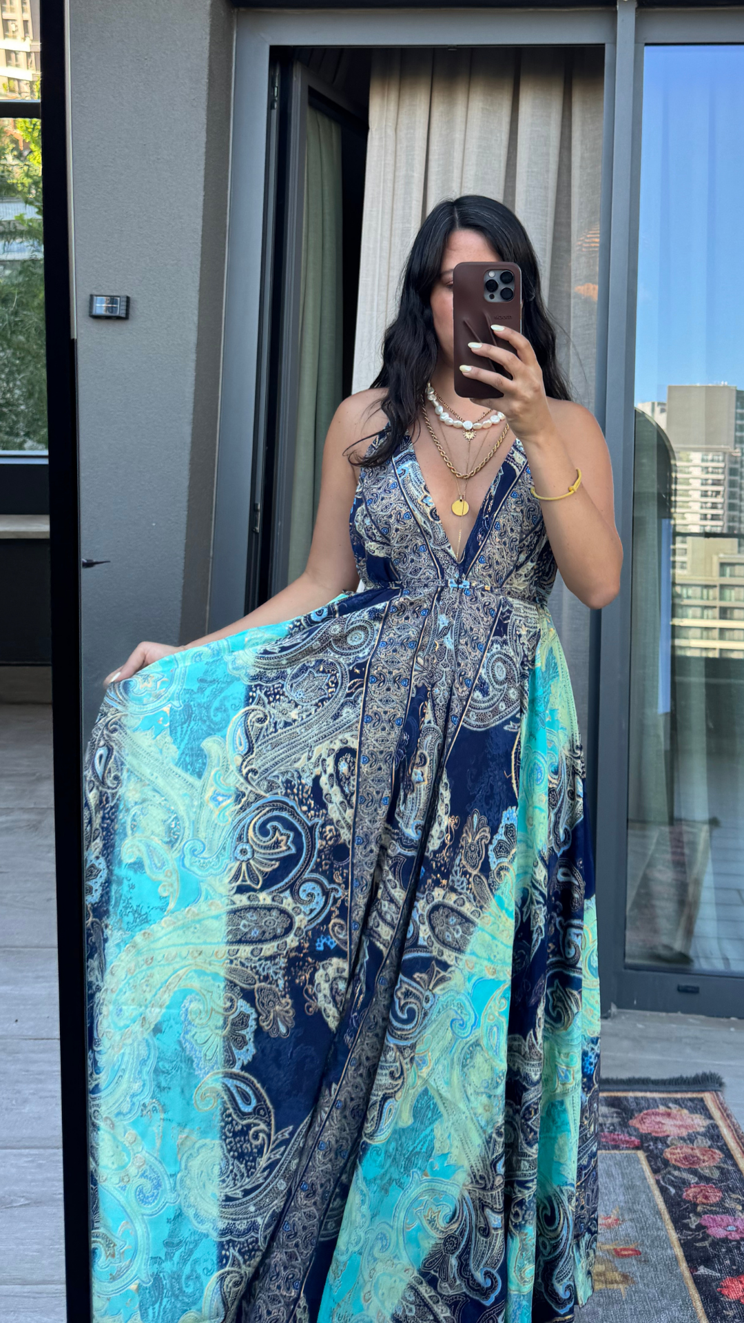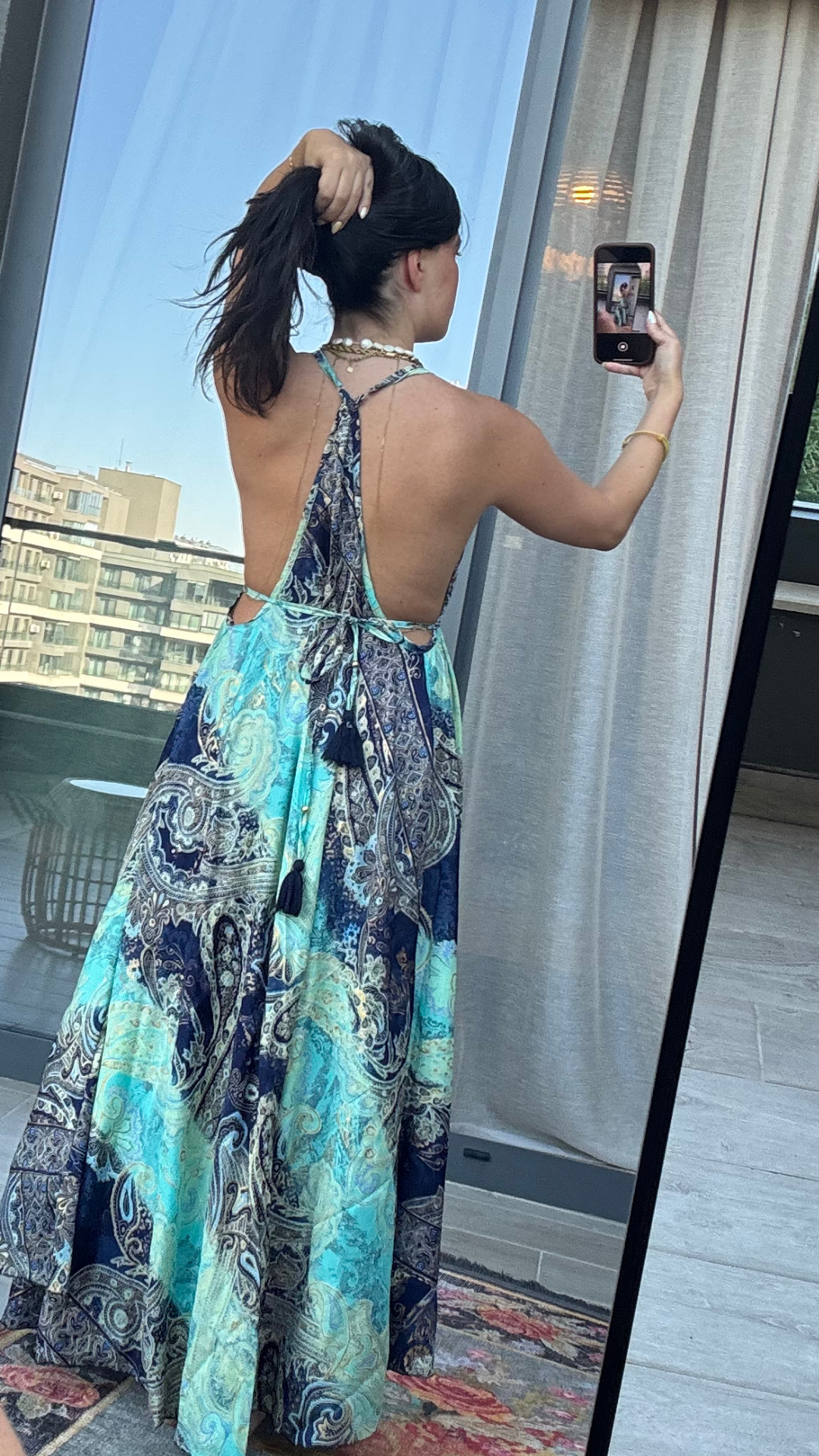 Sırt Dekolteli İşlemeli Lacivert Turkuaz İthal Elbise standart bedendir.