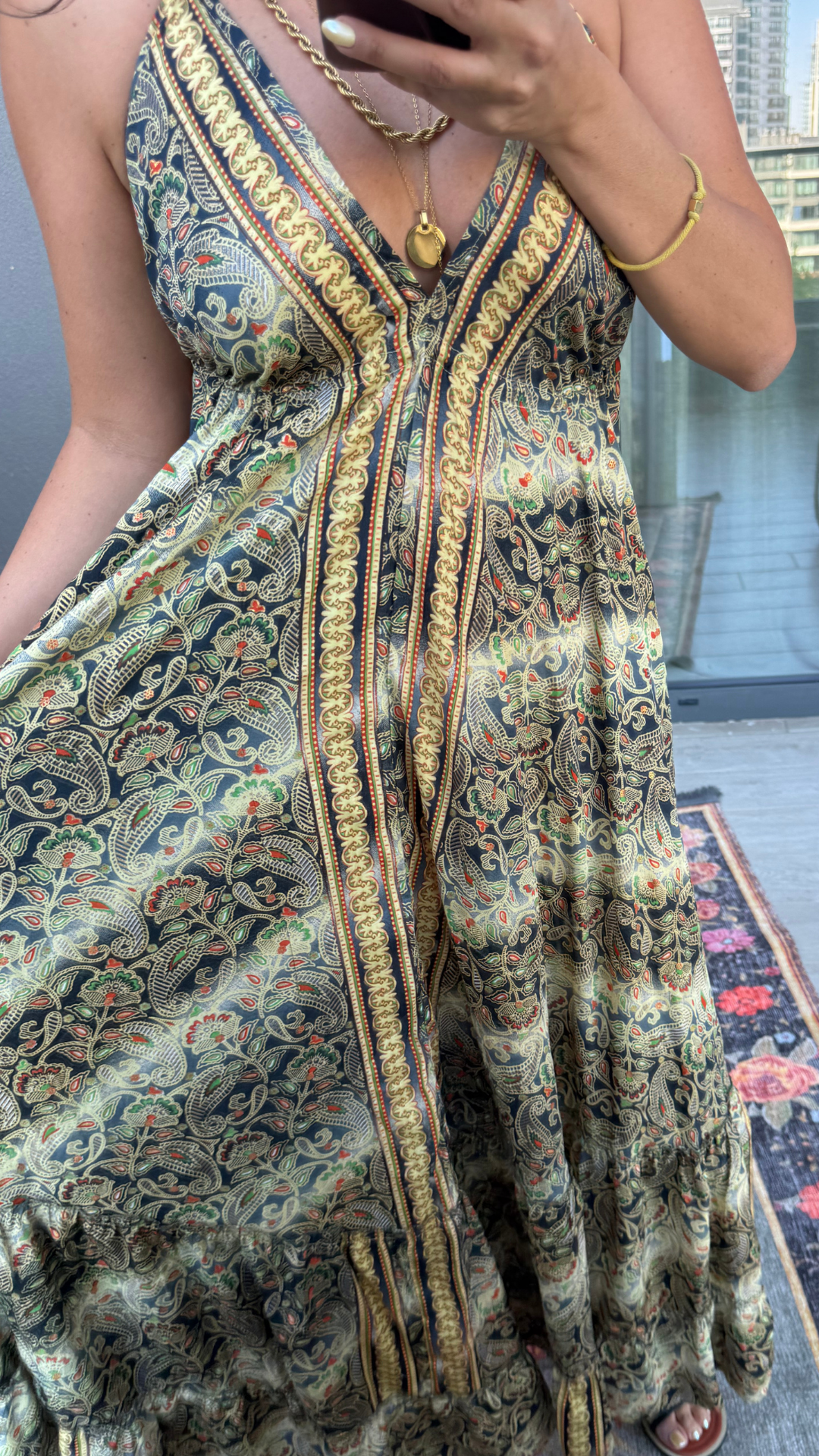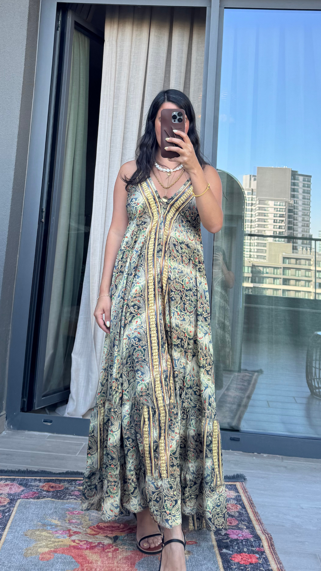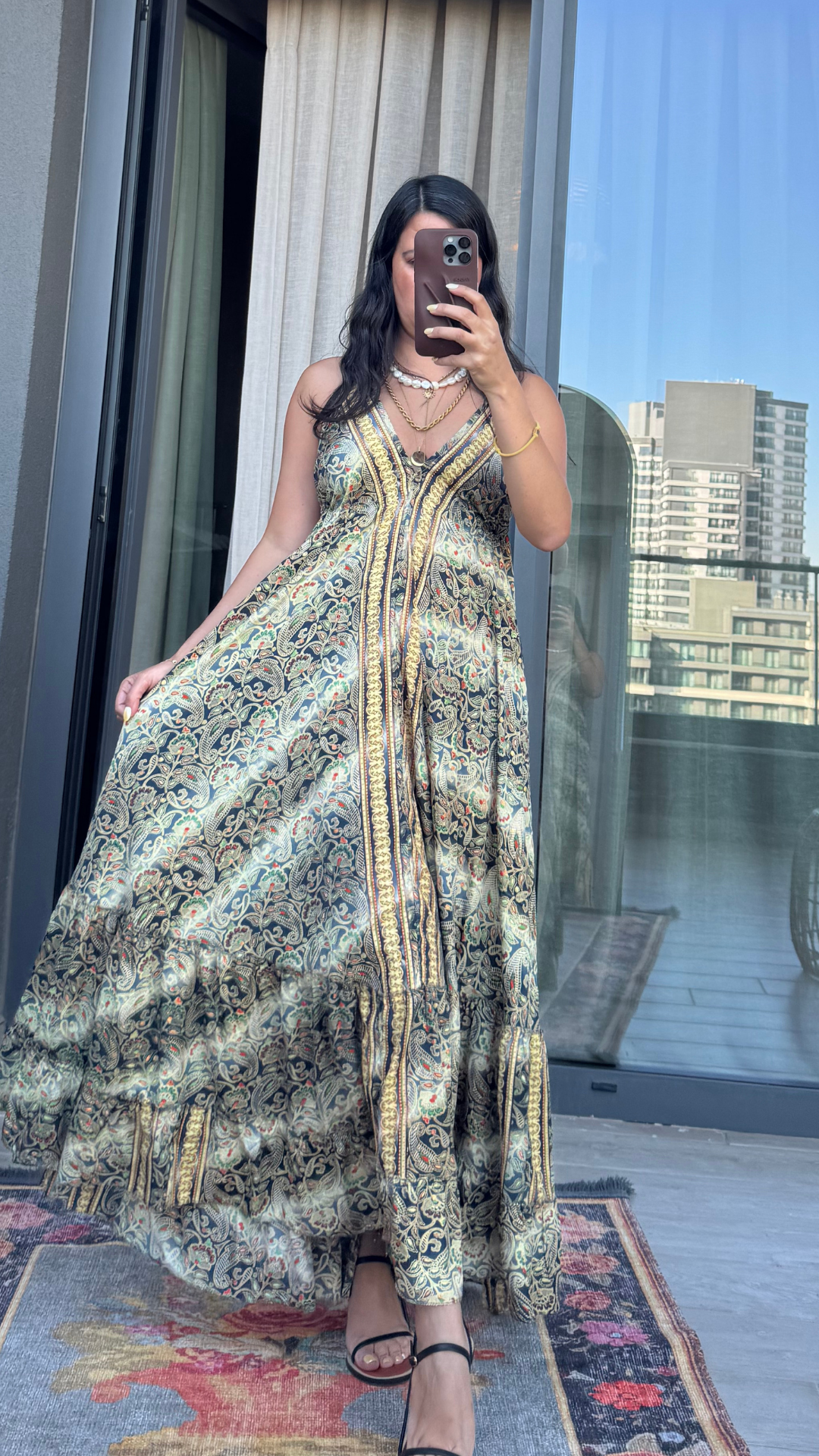 Sırt Dekolteli İşlemeli Sarı Siyah İthal Elbise standart bedendir.