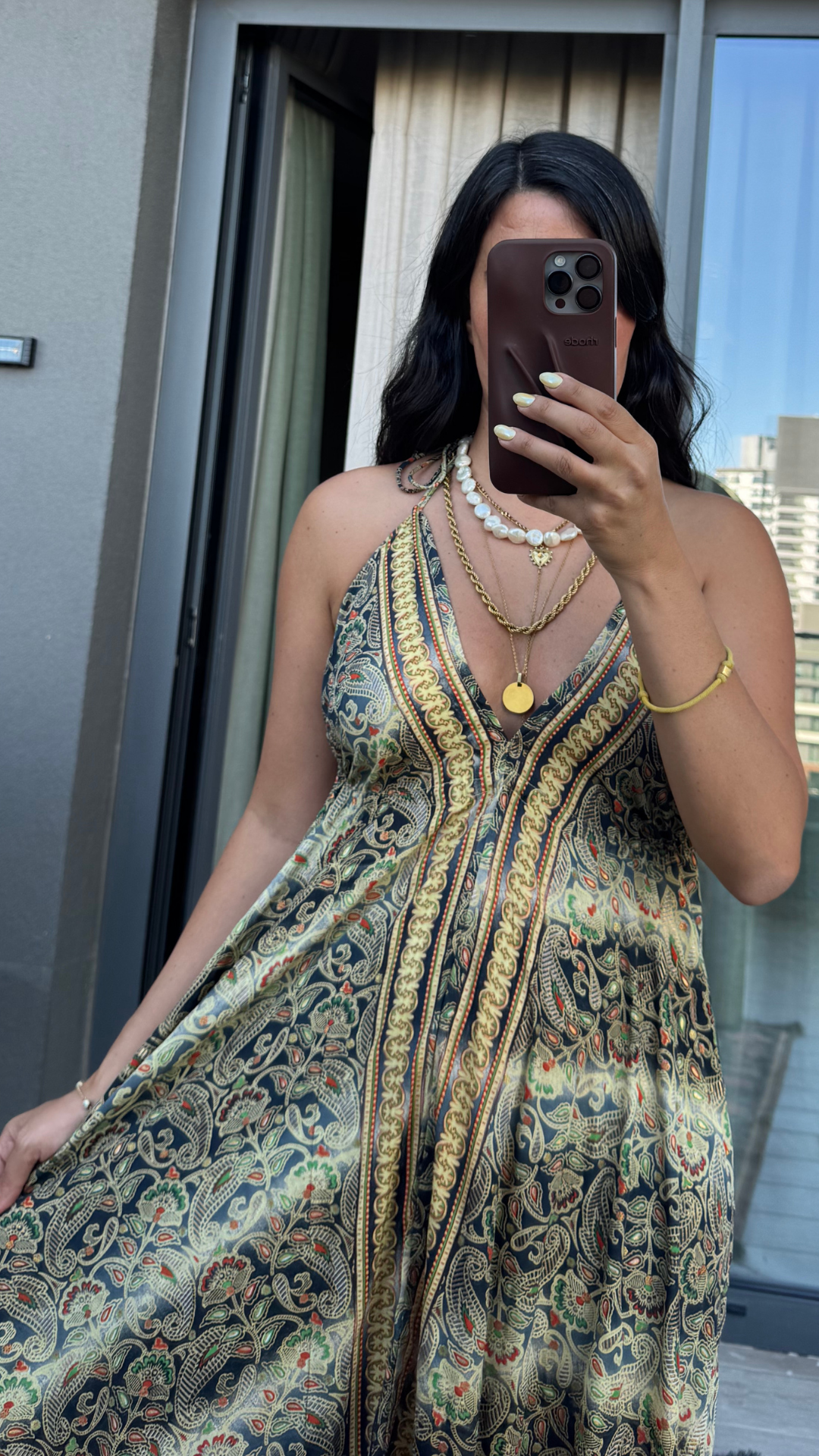 Sırt Dekolteli İşlemeli Sarı Siyah İthal Elbise