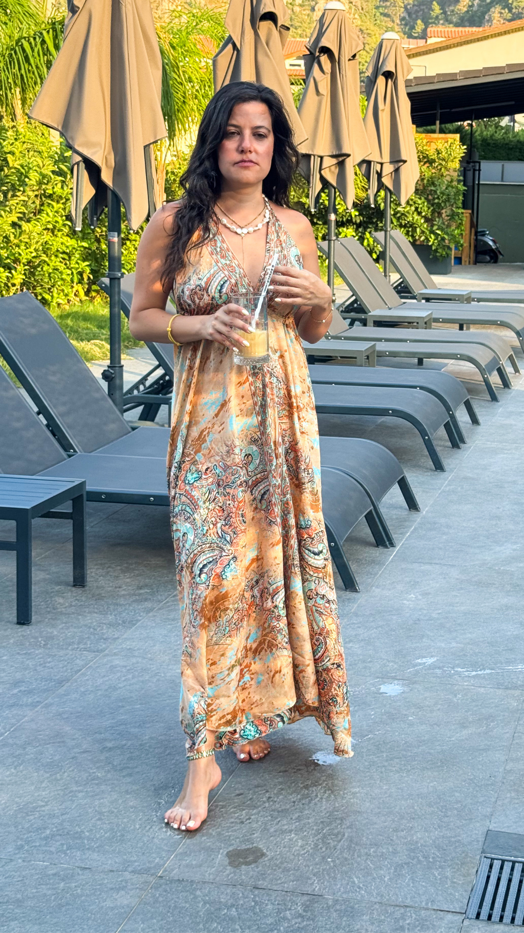 Sırt Dekolteli İşlemeli SomonTurkuaz İthal Elbise standart bedendir.