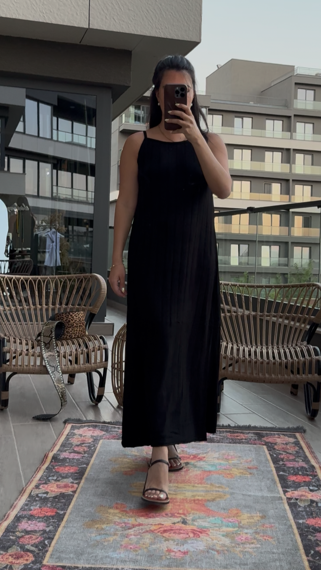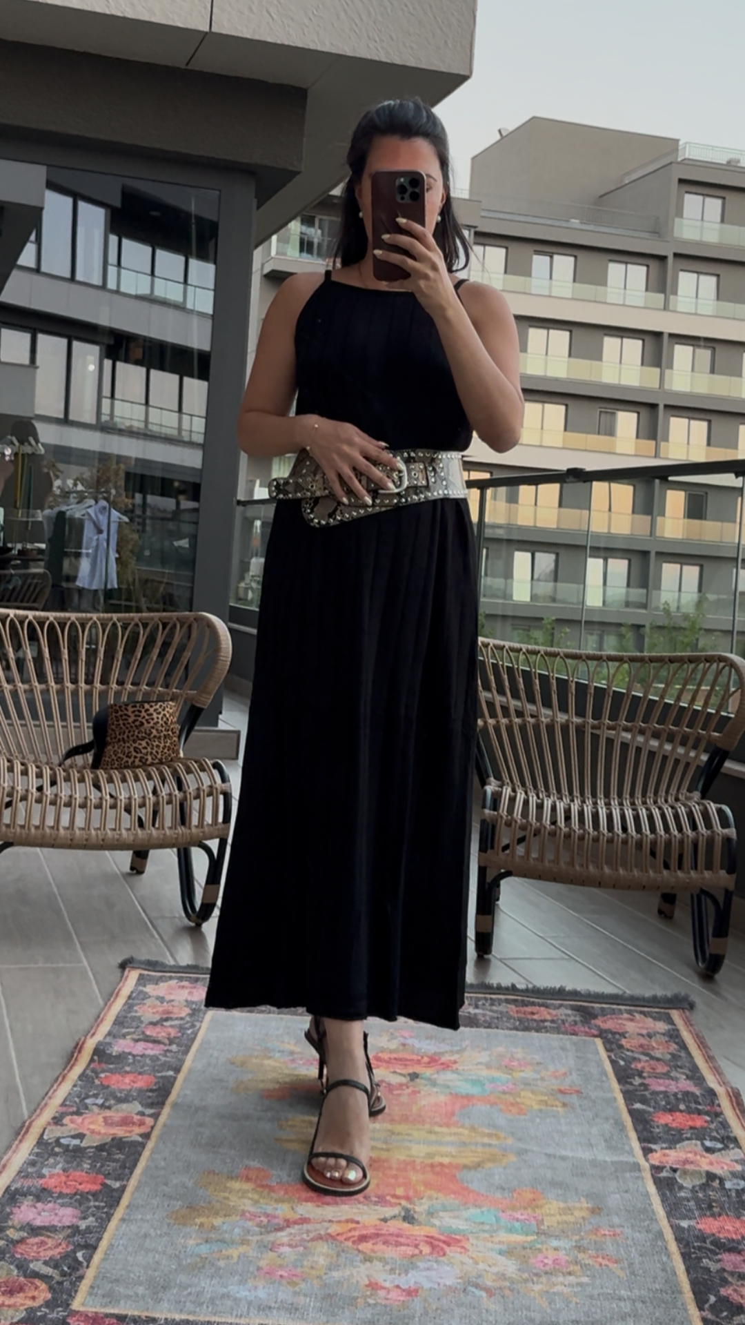 Siyah Uzun Triko Elbise standart bedendir. Kemer dahil değildir.