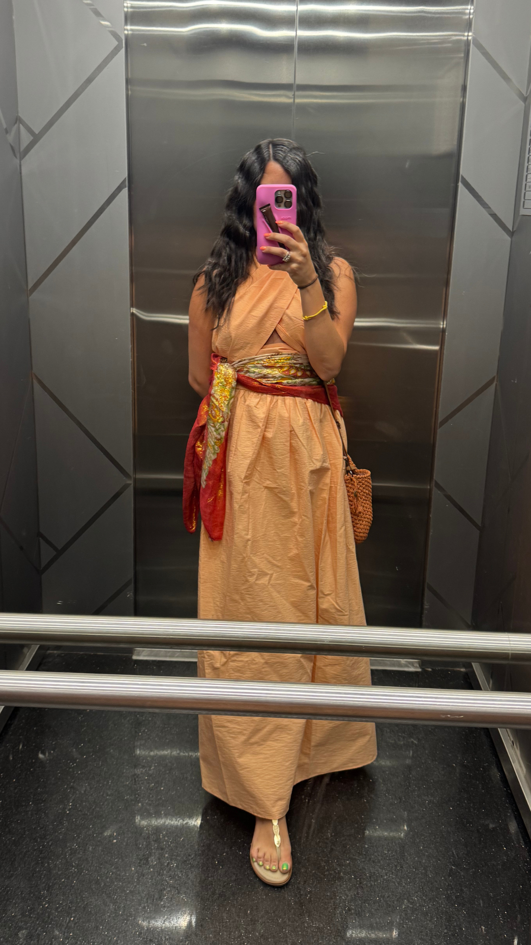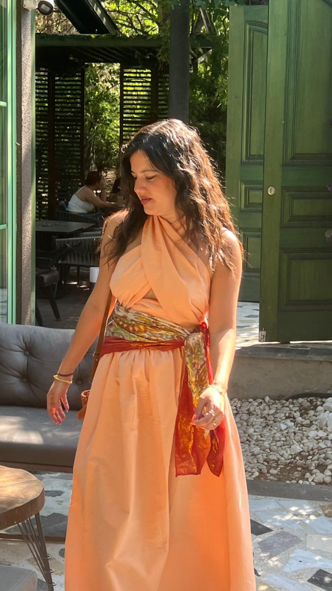 Somon Boyundan Bağlamalı Elbise arkası fermuarlıdır.