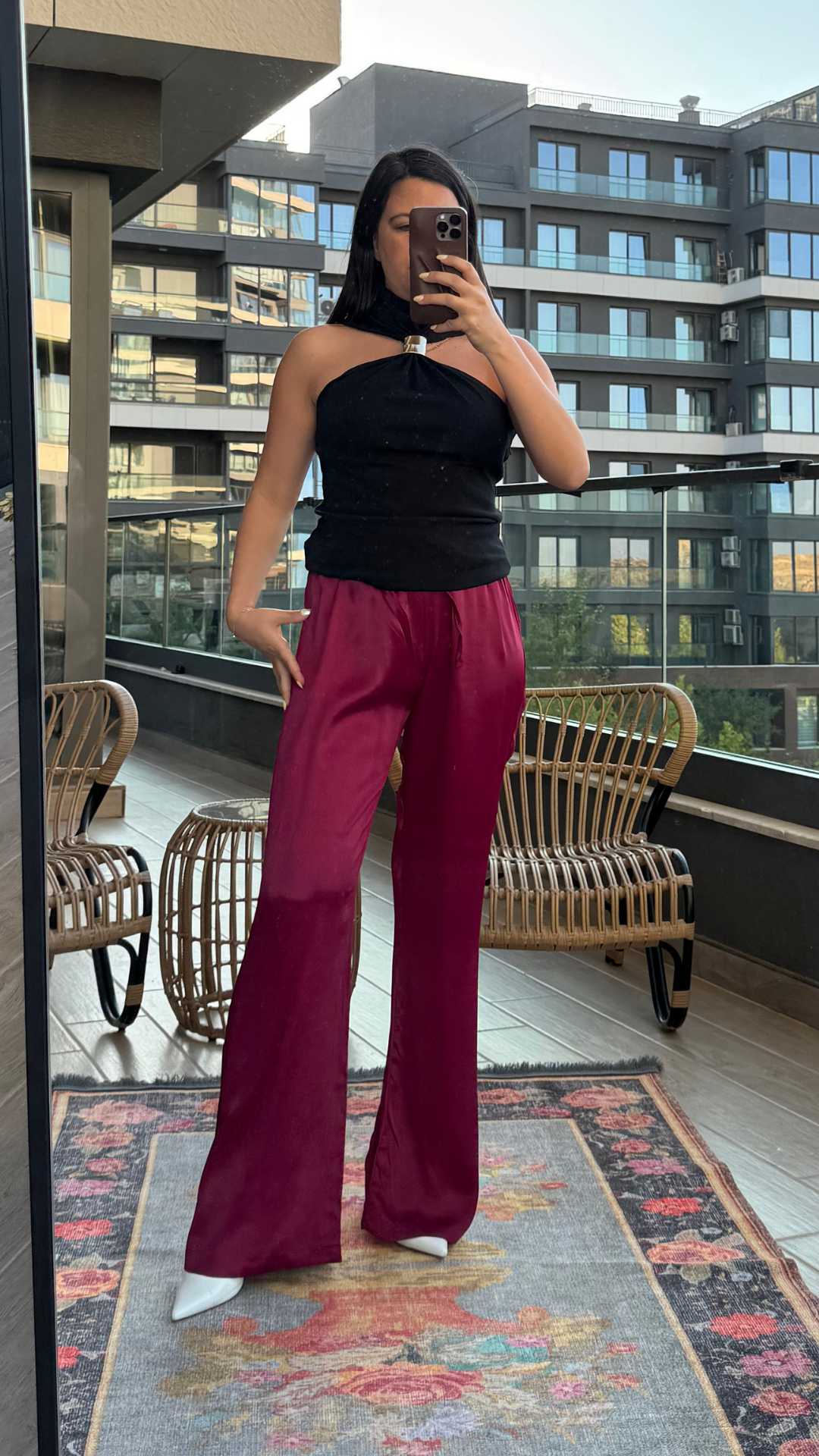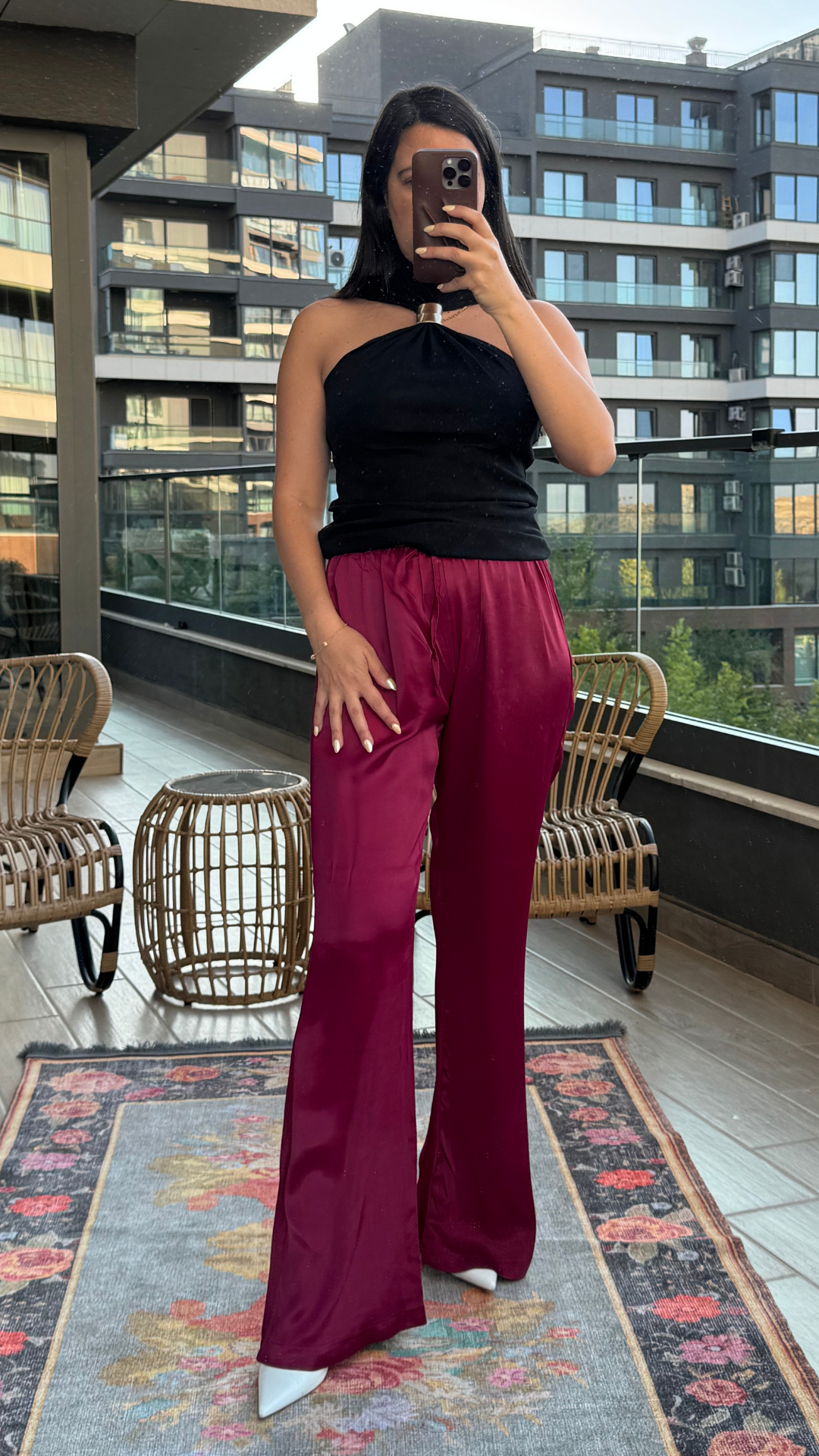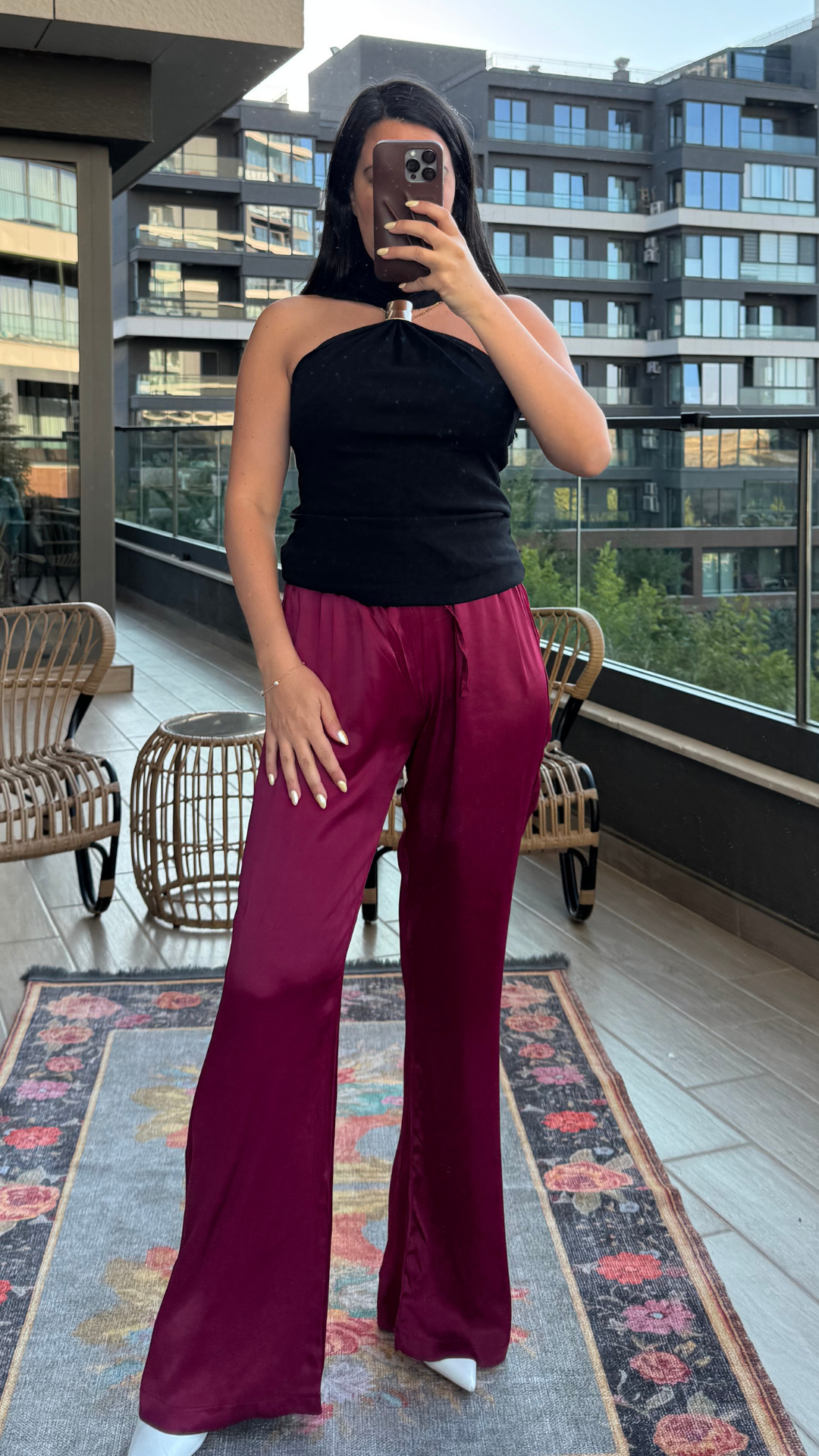 Vişne Rengi Saten Pantolon