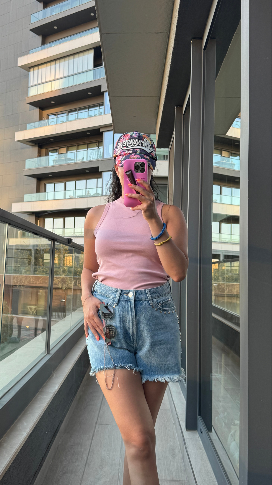 Zımbalı Açık Renk İthal Kot Şort Tam kalıptır. Etiketleri kesilmiştir.